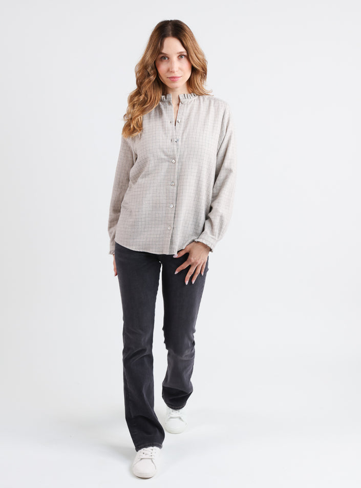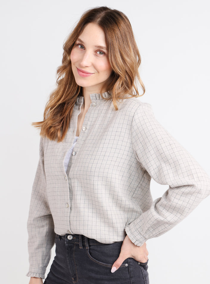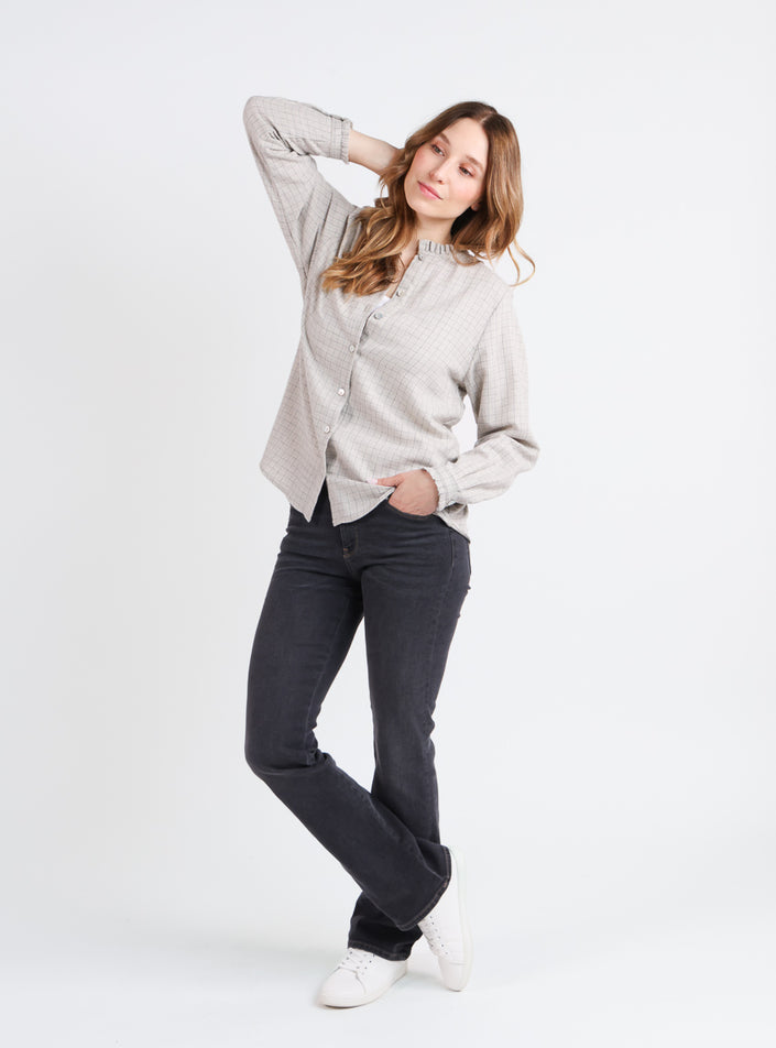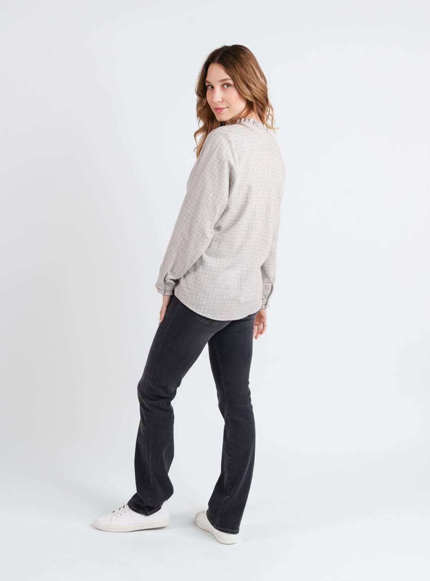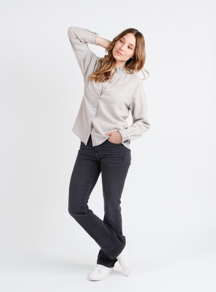 Alliant confort et élégance, ce chemisier femme à carreaux gris est une pièce essentielle pour un style casual chic au quotidien. Fabriqué en Franc...