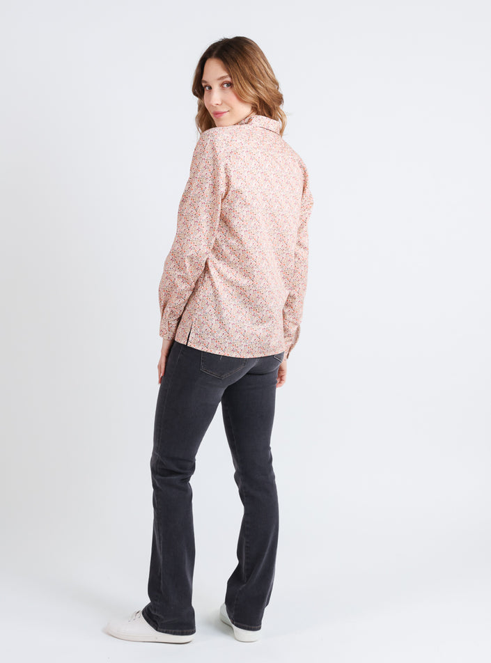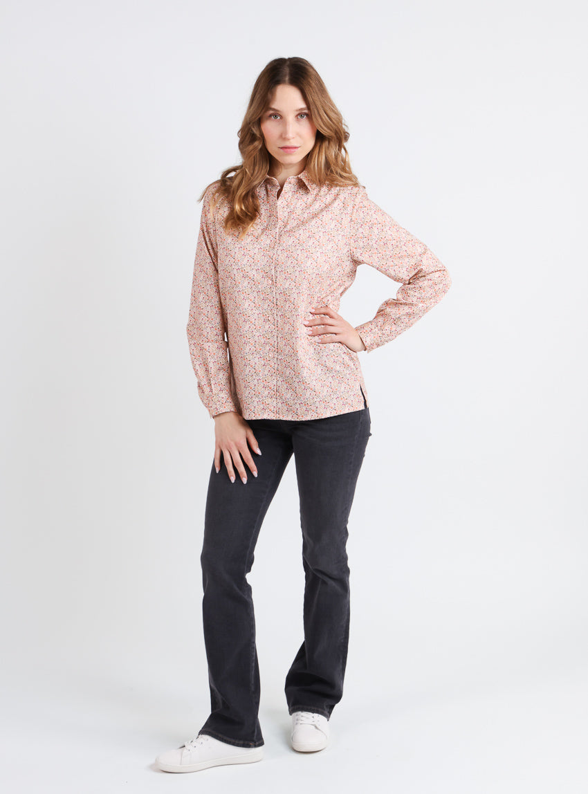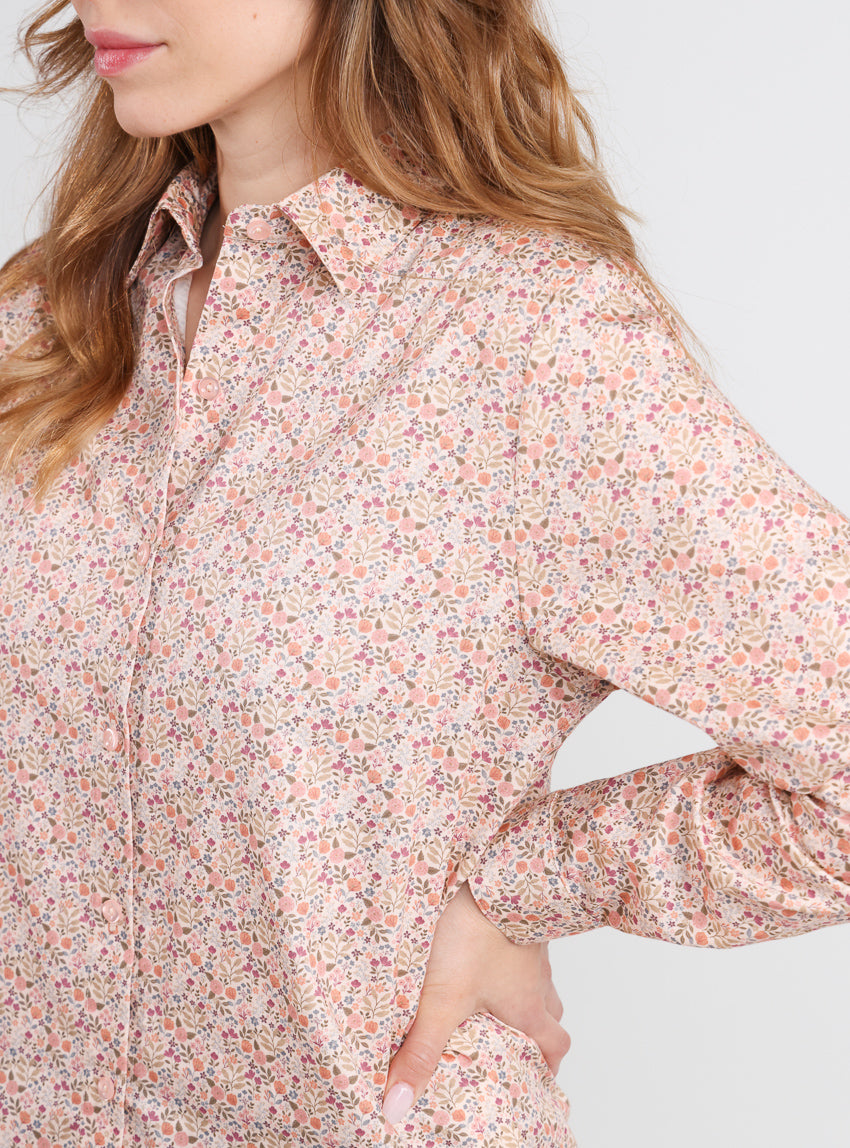 CHEMISIER FEMME COTON ORANGE À FLEURS