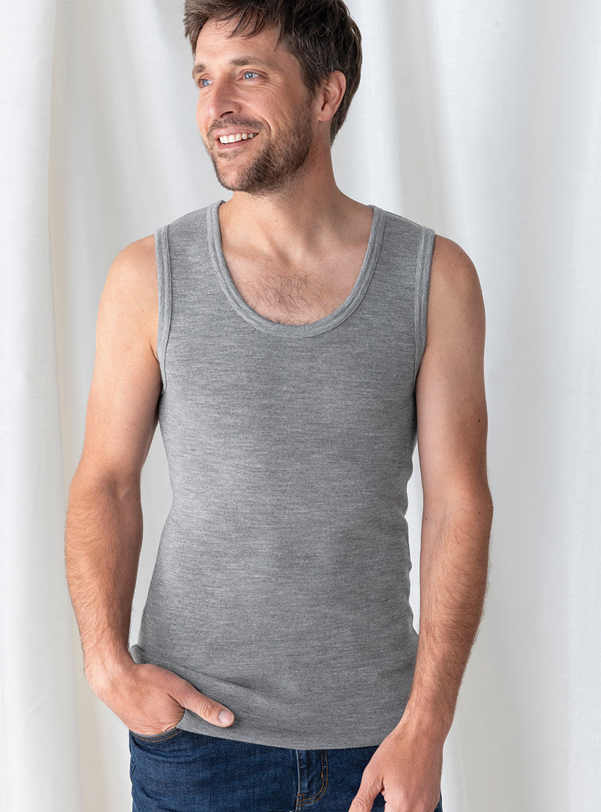 Ce débardeur marcel en laine mérinos gris léger est conçu pour apporter une chaleur naturelle sans surépaisseur, avec une coupe longue qui reste bi...