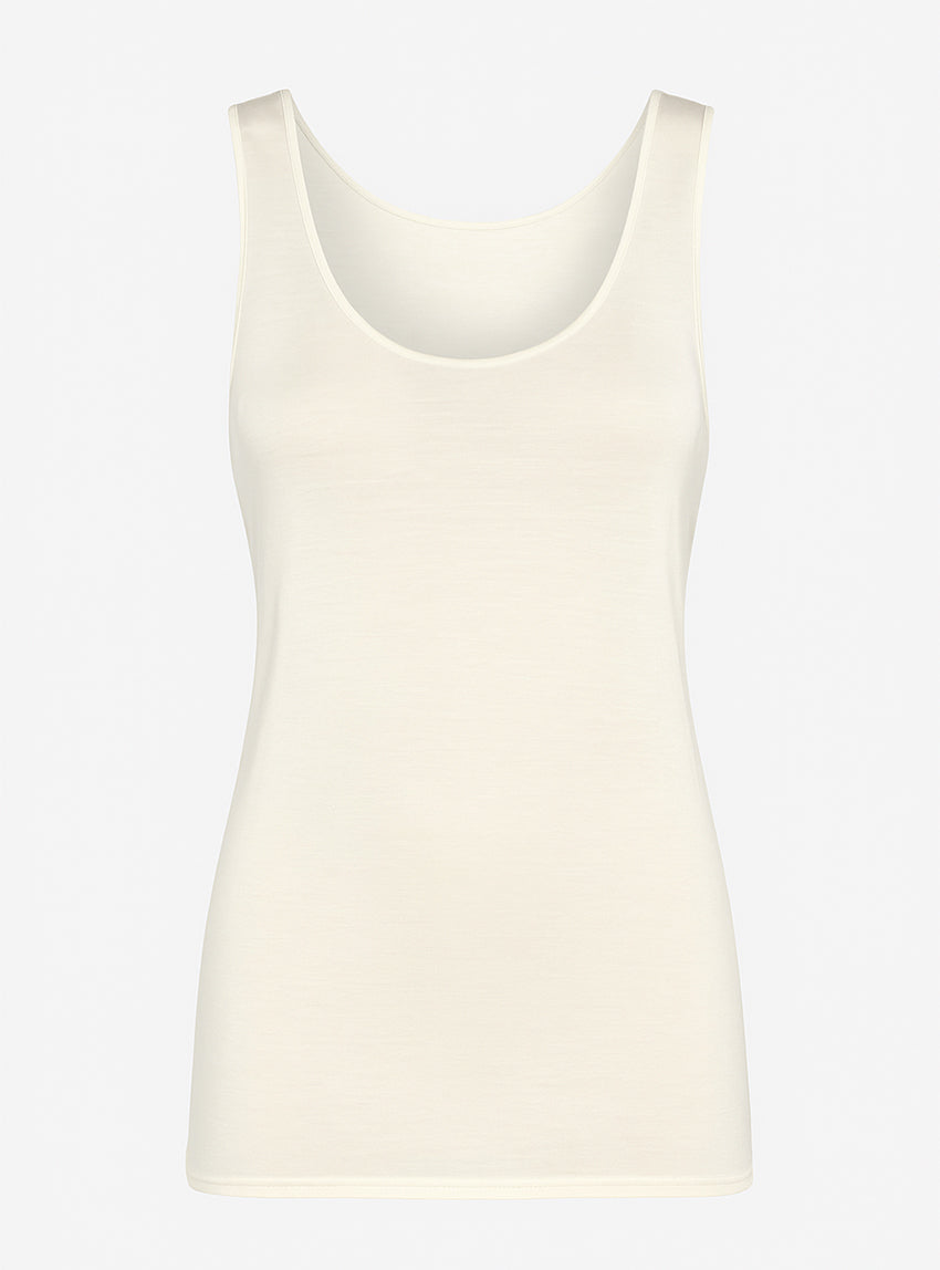 Débardeur femme larges bretelles en laine merinos blanc naturel