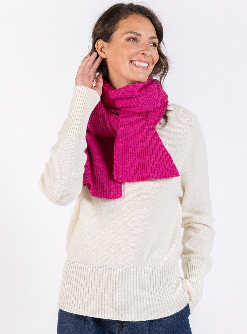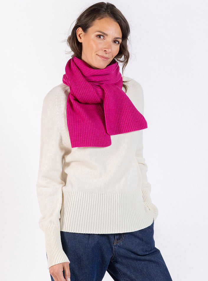 Echarpe en laine mérinos rose framboise