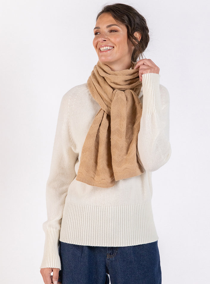 Confectionnée en cachemire pur, cette écharpe se distingue par sa douceur incomparable et sa chaleur naturelle, tout en restant légère. Sa maille chevron légèrement reliefée apporte de la texture et du caractère, tout en conservant une grande finesse. Le cachemire offre une excellente isolation thermique et une sensation de confort luxueuse, idéale pour les journées fraîches.