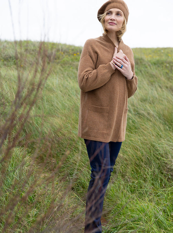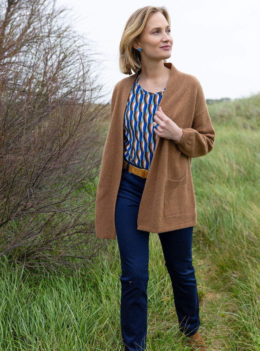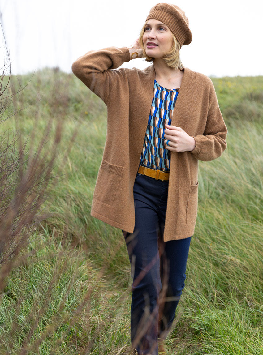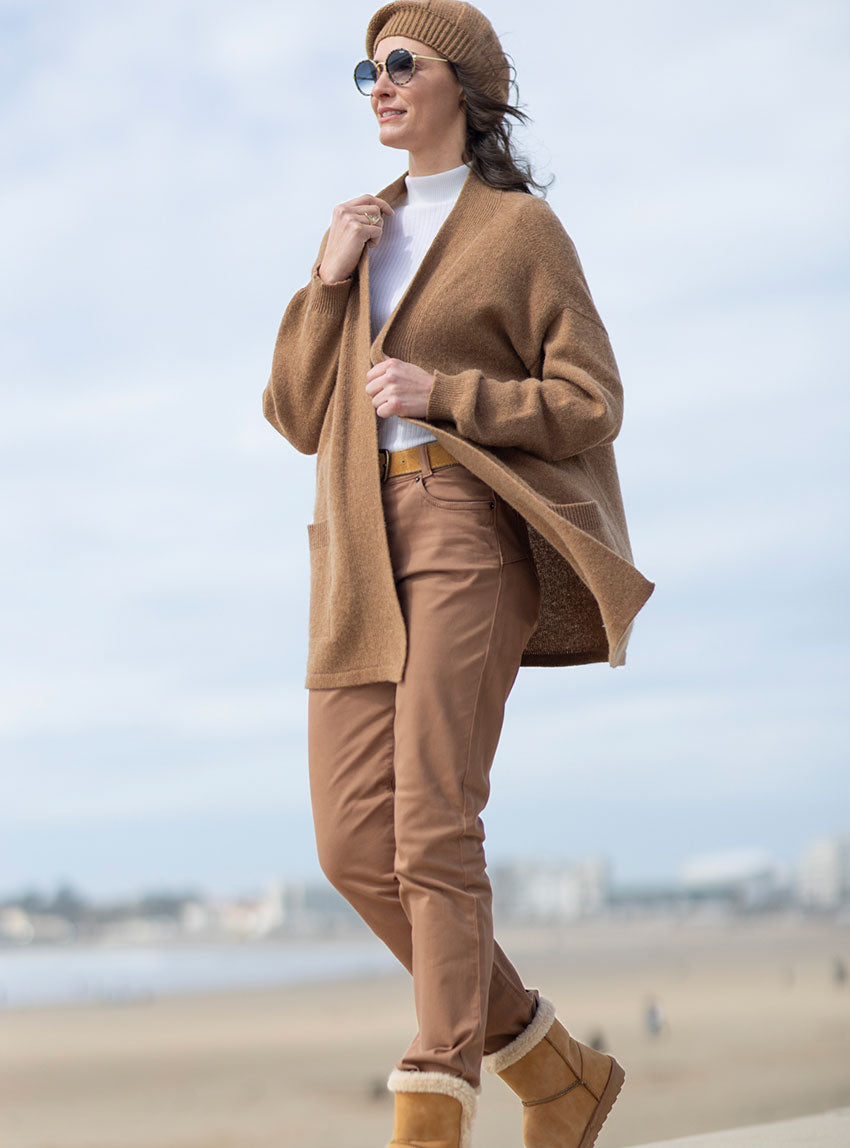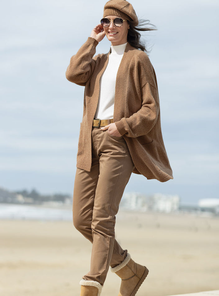 Ce gilet long en laine recyclée coloris beige écureuil est l’allié parfait pour conjuguer confort et élégance au quotidien. Confectionné en France,...