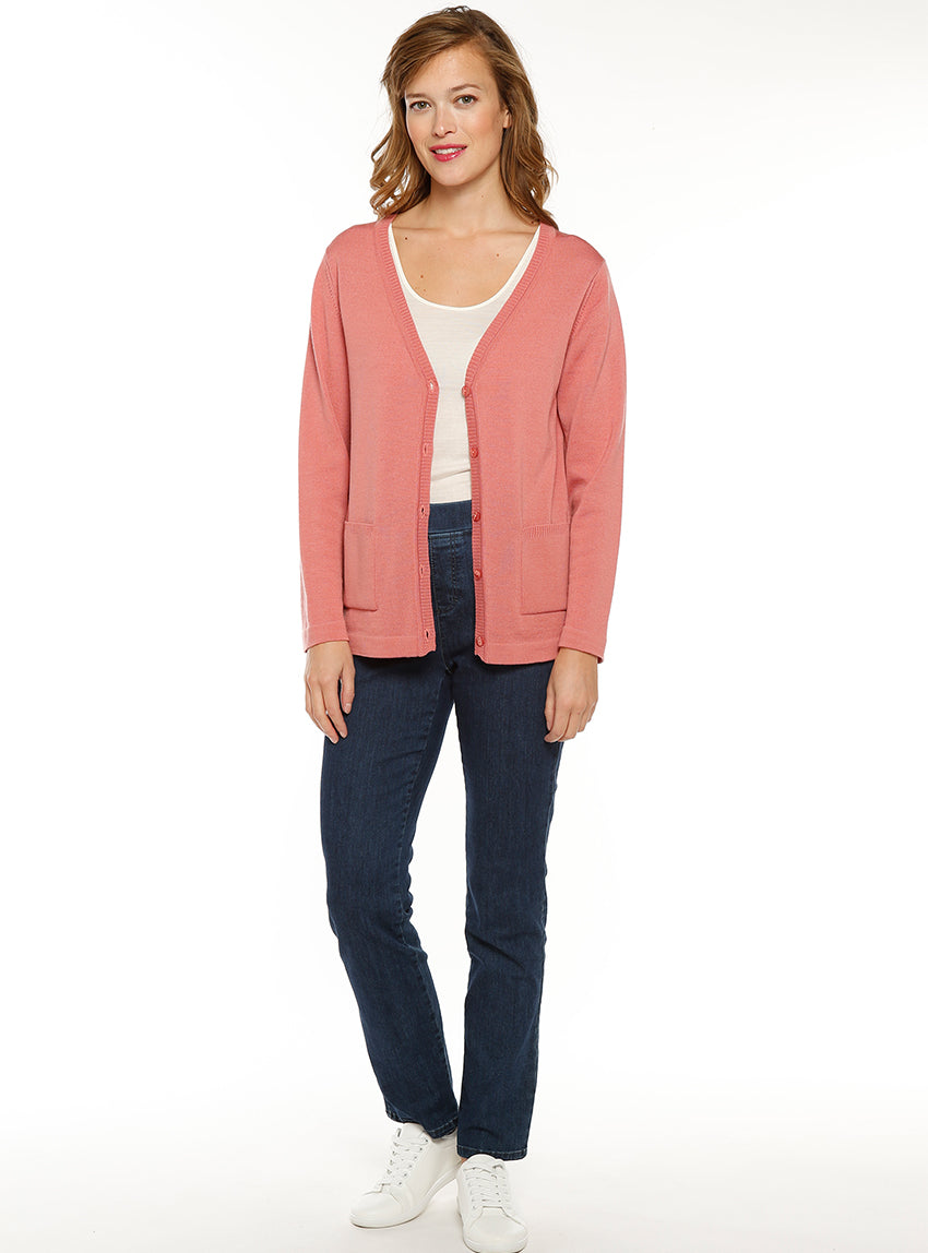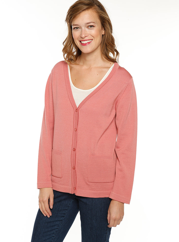 Ce gilet femme en laine mérinos rose tomette est une pièce polyvalente et confortable. Son encolure en V met en valeur le port de tête et permet de...