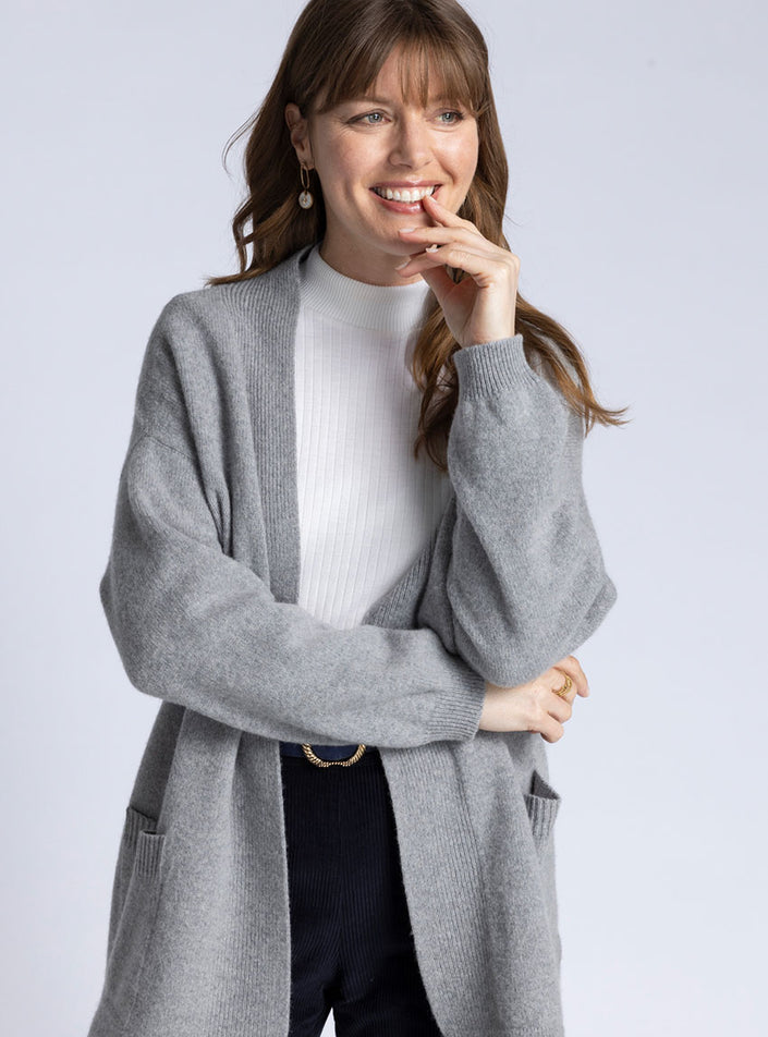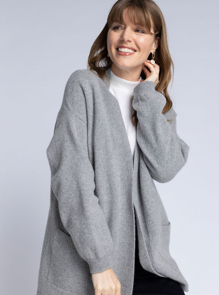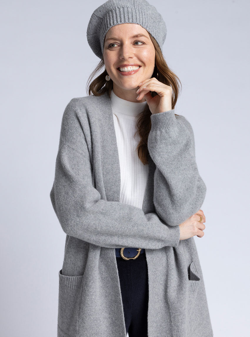 Ce gilet long pour femme en laine recyclée grise est une pièce essentielle alliant confort, douceur et style écoresponsable. Fabriqué en France, il...