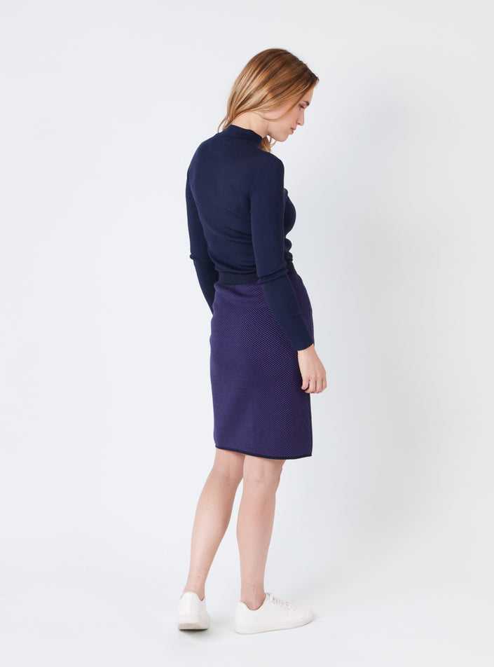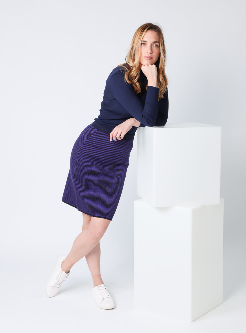 JUPE DROITE EN LAINE MÉRINOS BLEU MARINE
