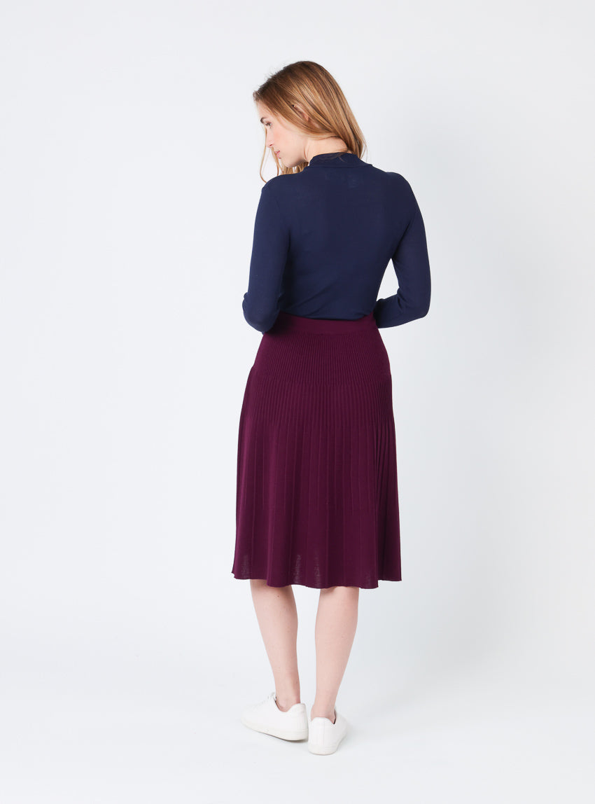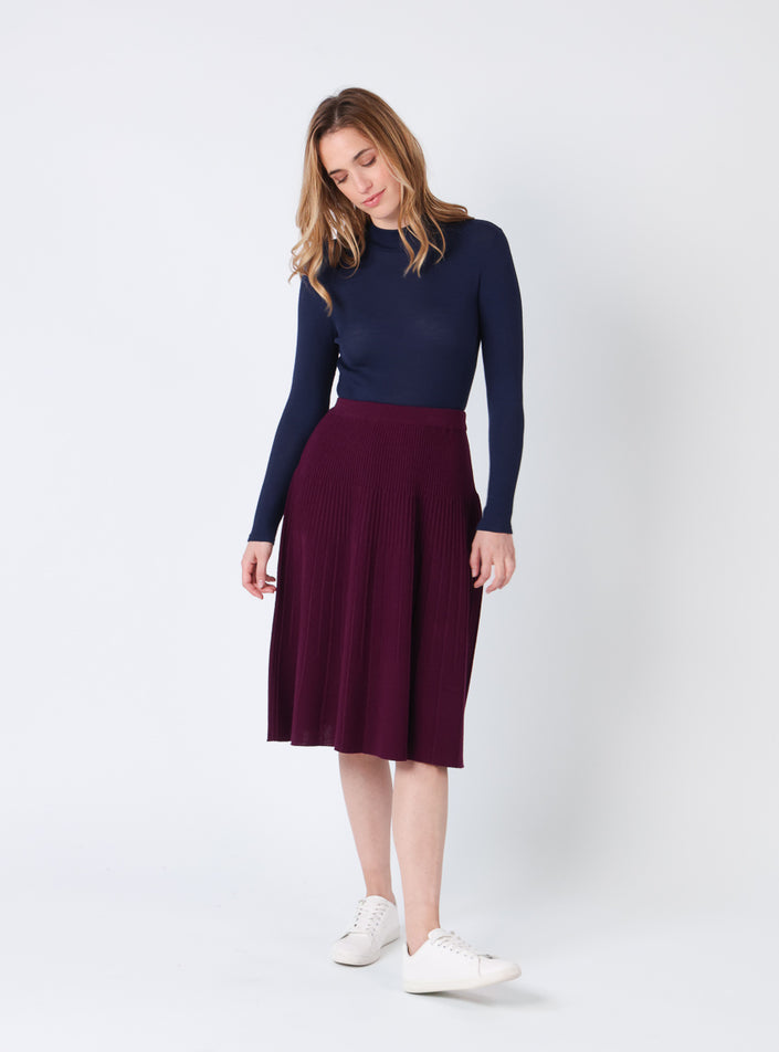 Cette jupe plissée en laine mérinos est un essentiel d’élégance et de féminité. Sa coupe fluide et son tombé impeccable soulignent la silhouette to...