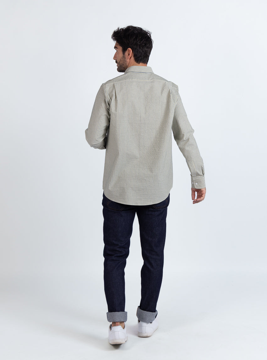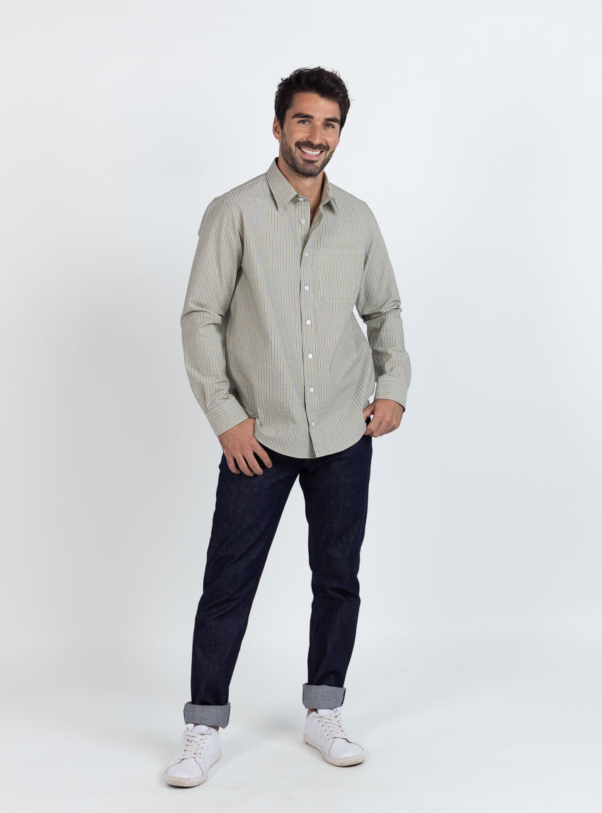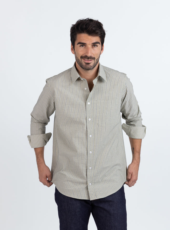 Chemise estivale homme coton rayé vert