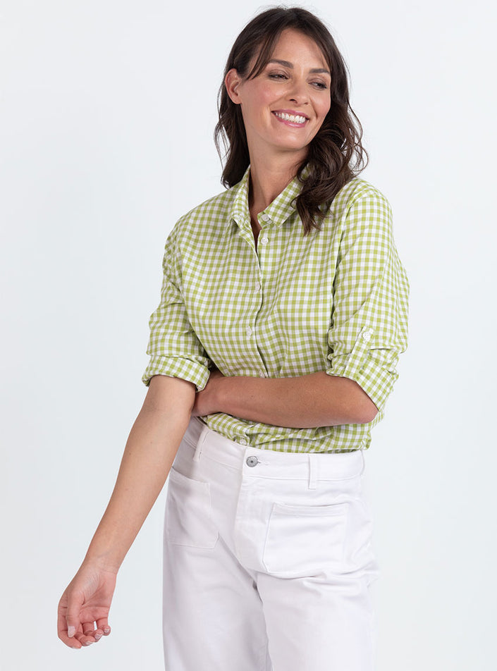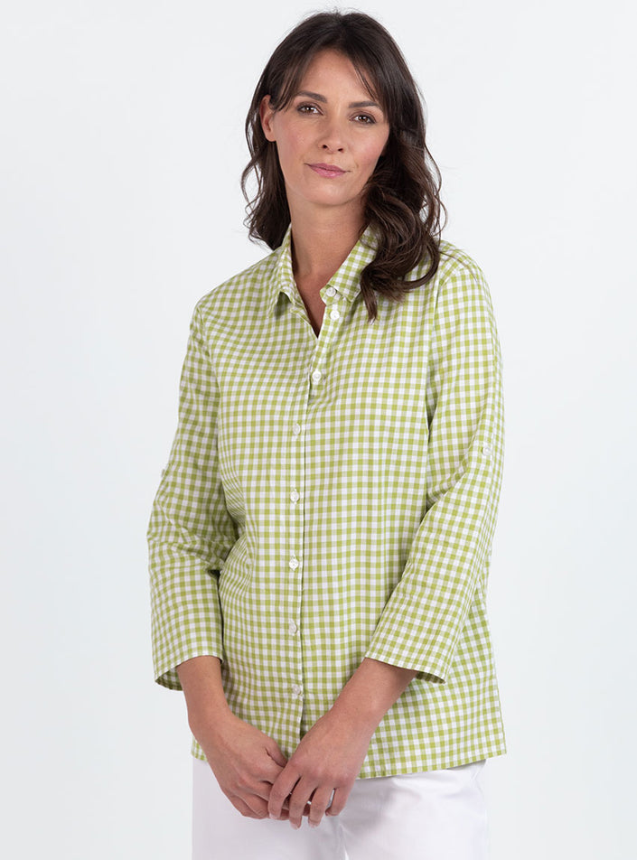 CHEMISE FEMME EN COTON VICHY VERT ANIS