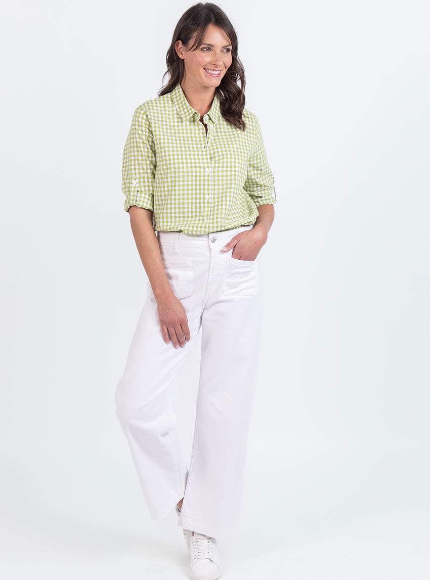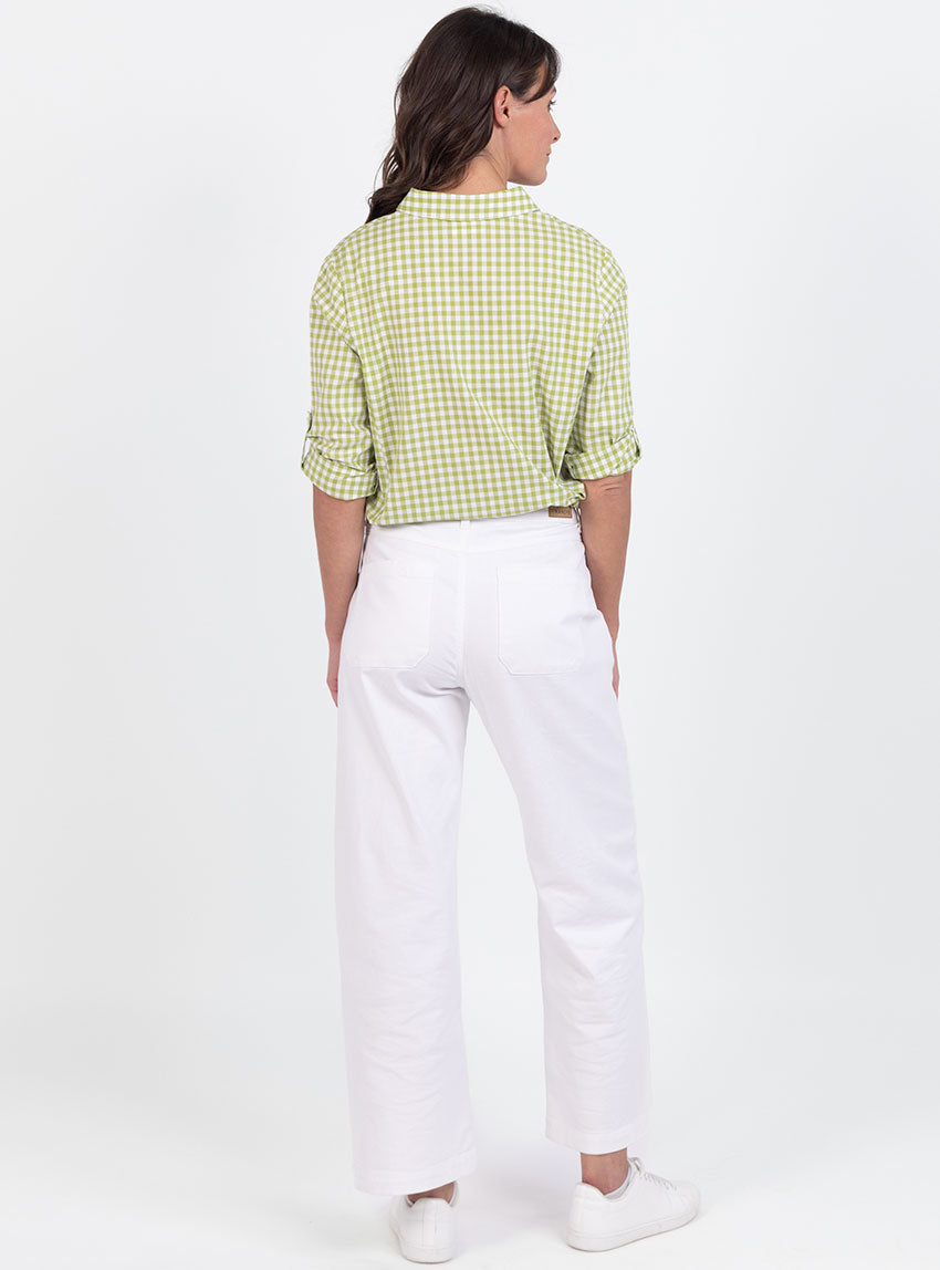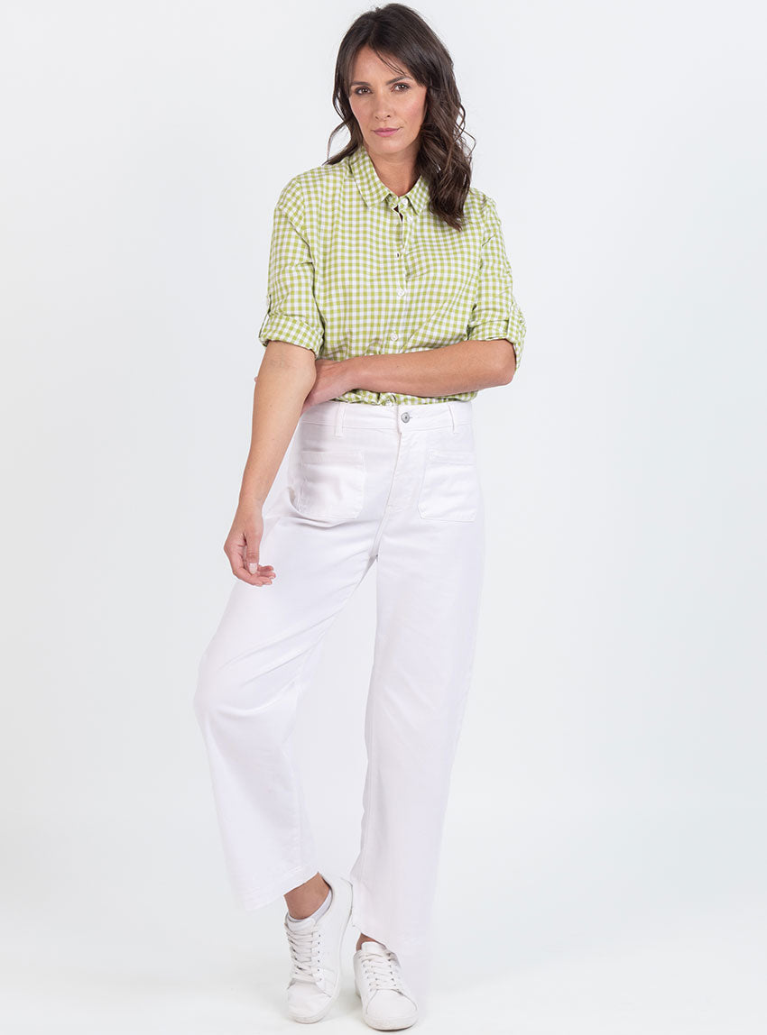 Le vichy vert anis, lumineux et plein de fraîcheur, apporte une touche graphique et estivale à votre tenue. Il se marie parfaitement avec un pantalon clair, un jean ou une jupe unie pour un look casual chic et naturel. Un motif iconique revisité dans une teinte pétillante, idéal pour dynamiser votre dressing.