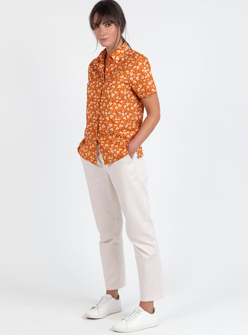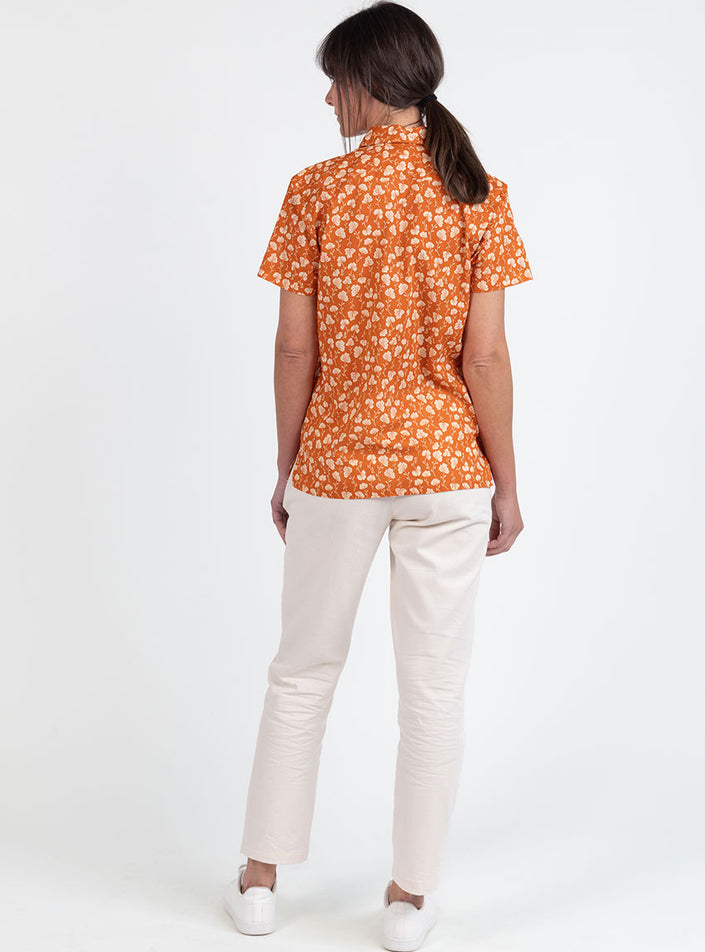 Chemisier en coton rayé imprimé orange ocre