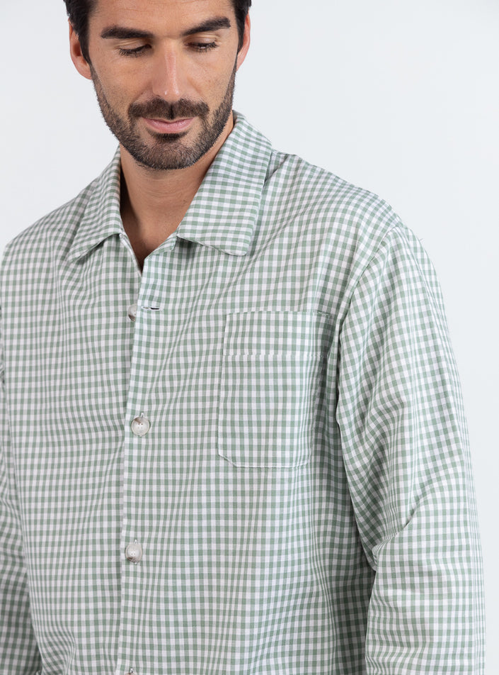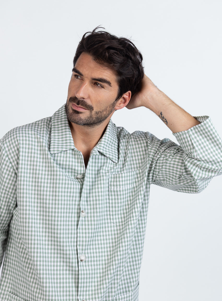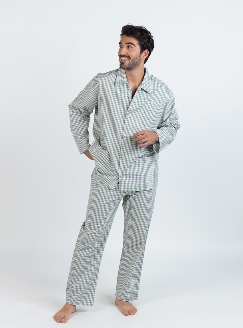 Pyjama homme en coton carreaux vert sauge