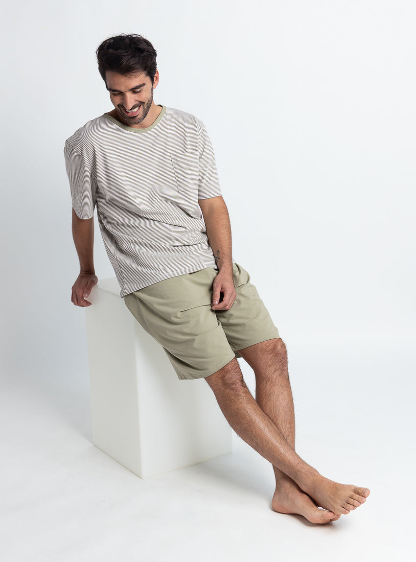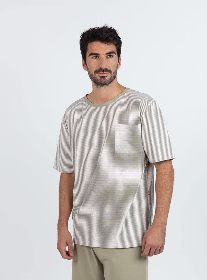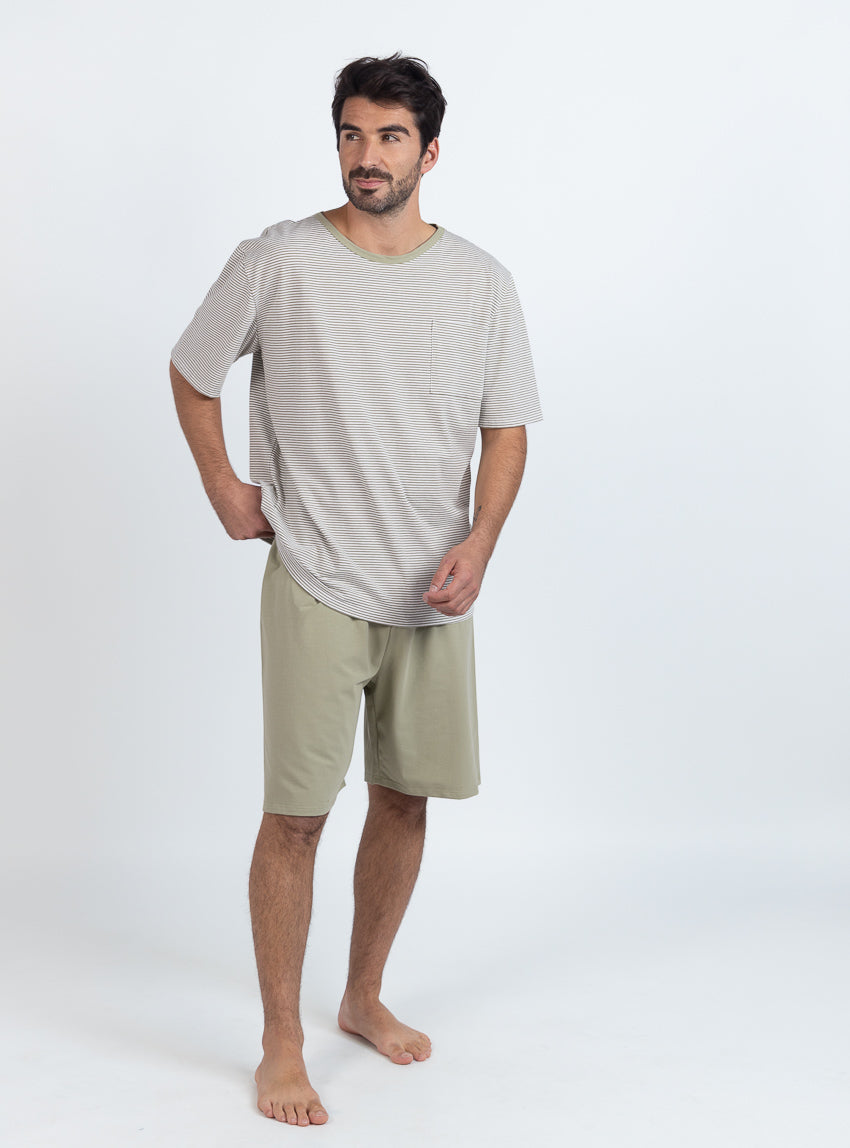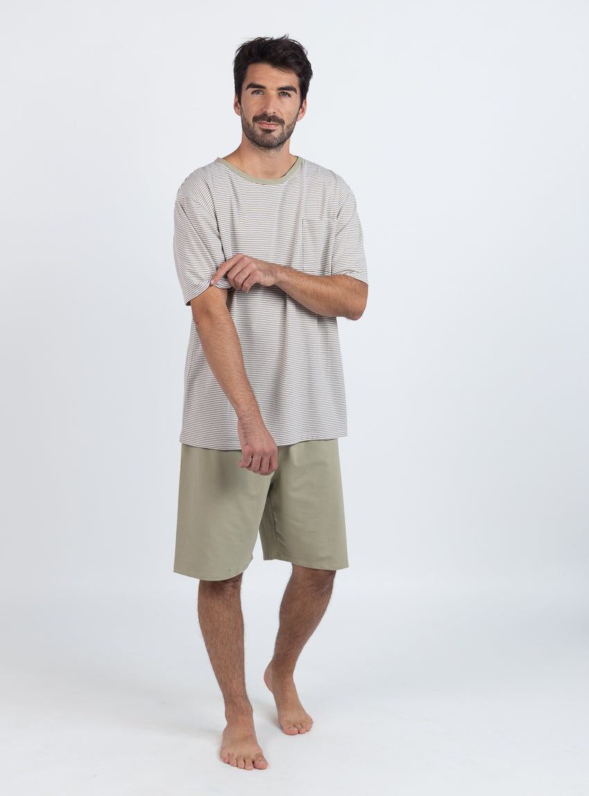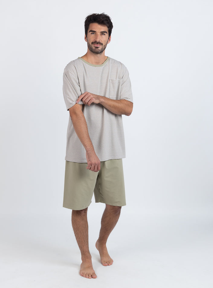 Pyjashort homme en coton rayé vert tilleul
