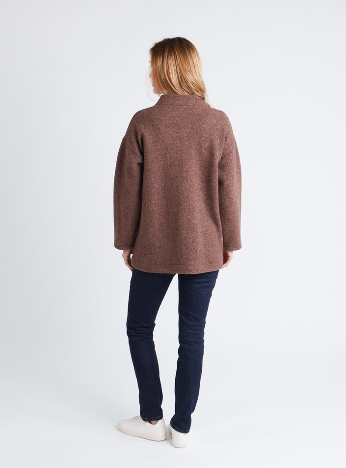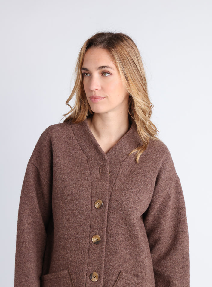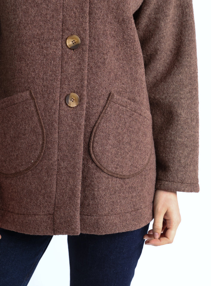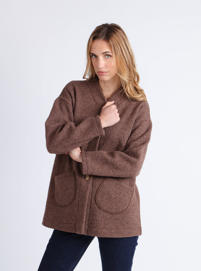 Manteau court femme laine bouillie marron foncé