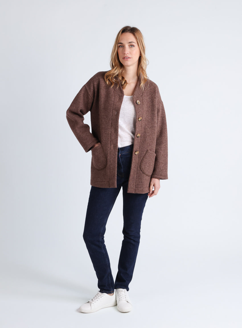 - Manteau court femme en laine bouillie