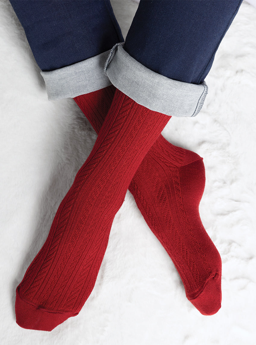 Ces mi-chaussettes mixtes en laine et soie rouges associent douceur, chaleur et raffinement dans un design intemporel. Fabriquées en France par une...