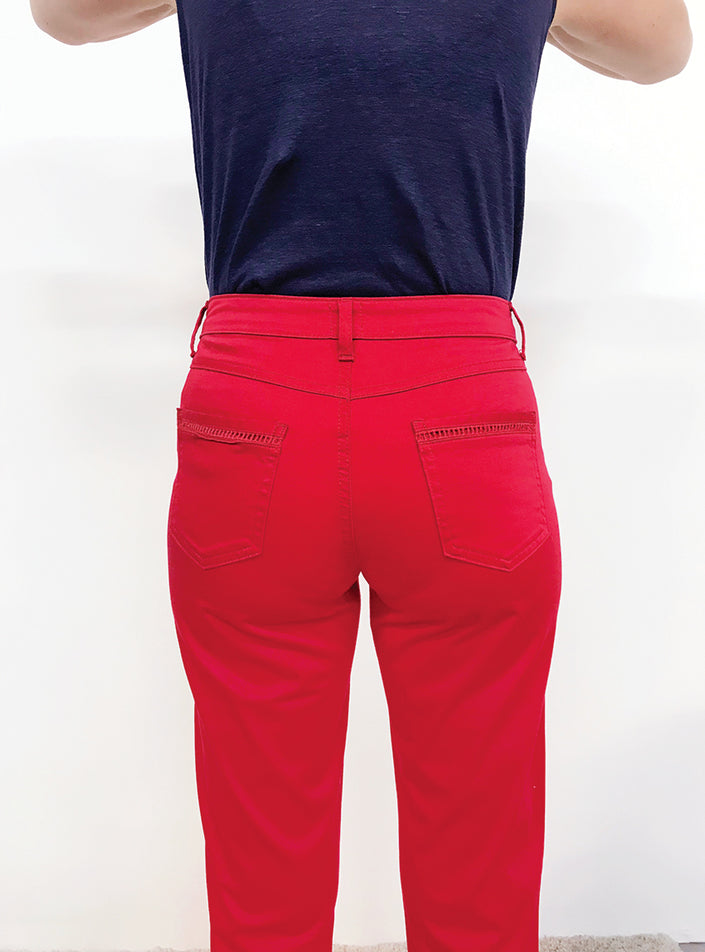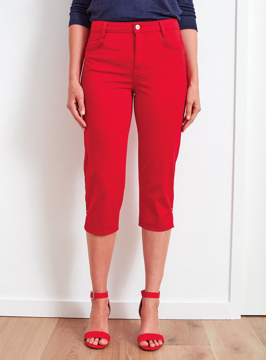 Ce pantacourt femme rouge allie confort, praticité et modernité. Confectionné dans une matière douce et extensible composée de 97 % coton et 3 % él...