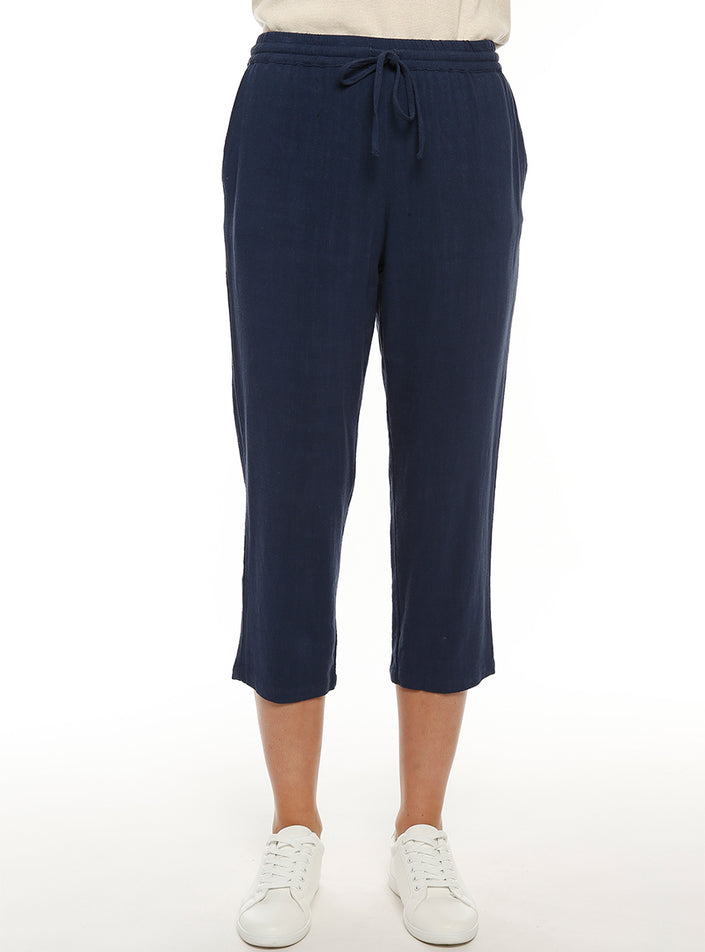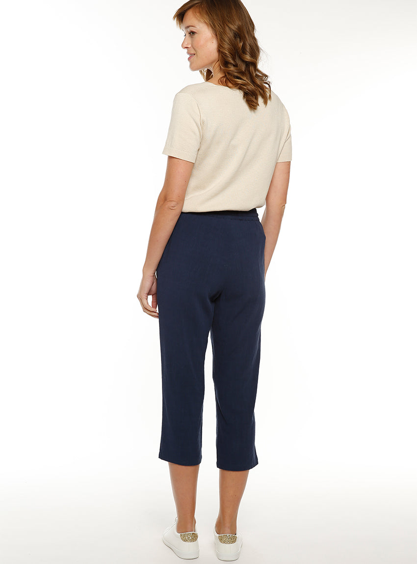 Pantacourt fluide femme en lin bleu marine