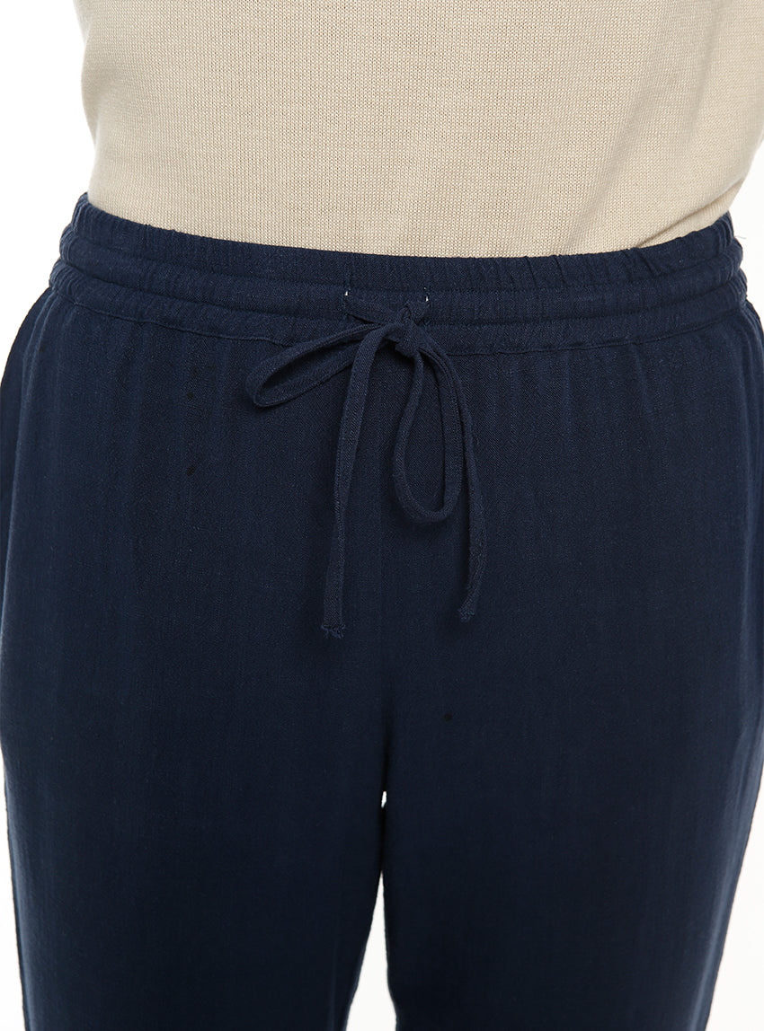 PANTACOURT FLUIDE FEMME EN LIN BLEU MARINE