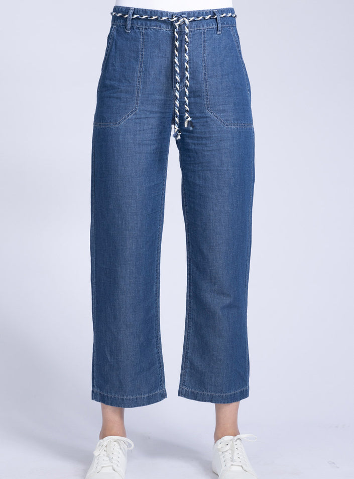 Ce pantalon 7/8 femme Bleu Indigo est une pièce moderne et élégante, parfaite pour la saison. Sa coupe haute ajustée à la taille met en valeur la silhouette, tandis que sa jambe large apporte fluidité et confort. Doté d’une fermeture par zip et bouton, ainsi que d’une cordelette à la ceinture, il allie style et praticité. Ses 2 poches devant et 2 poches arrière complètent ce modèle fonctionnel. Avec une longueur d’entrejambe d’environ 66 cm, il dévoile la cheville pour une allure contemporaine.