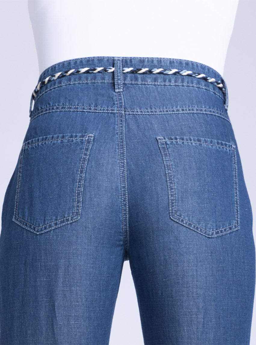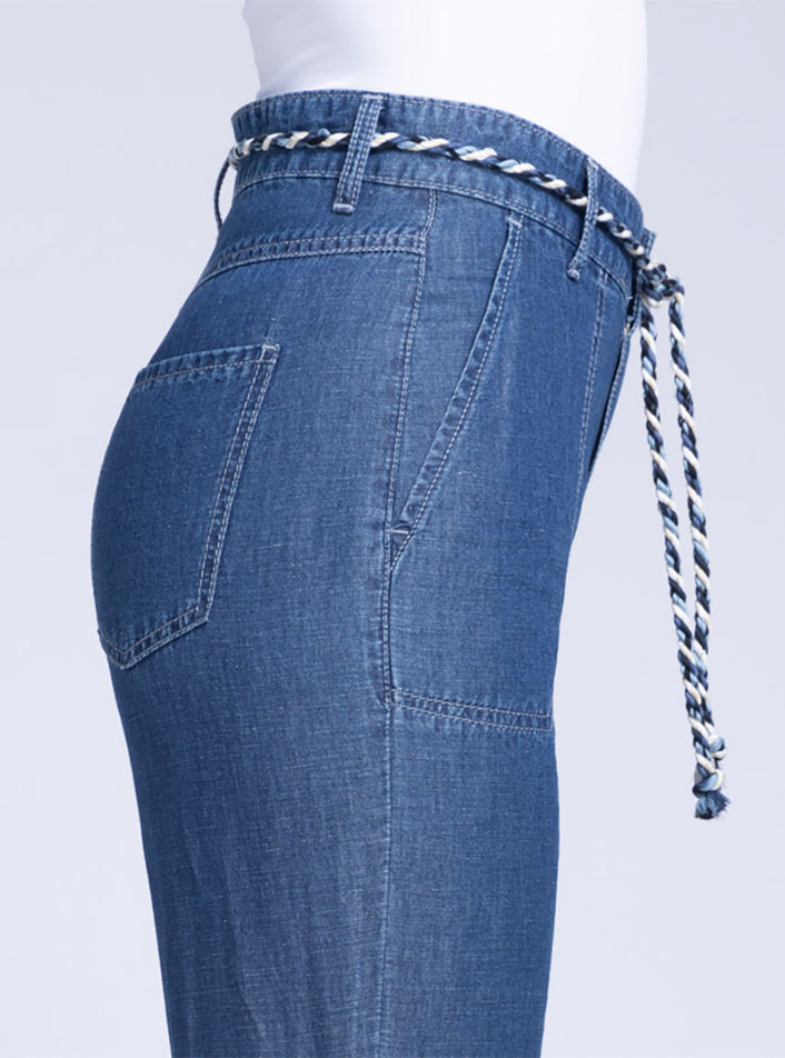 Pantalon 7/8 femme en coton et lin bleu indigo