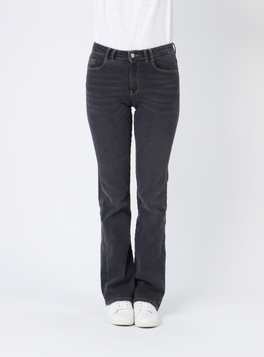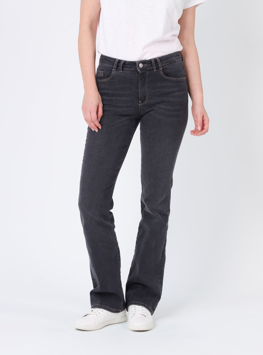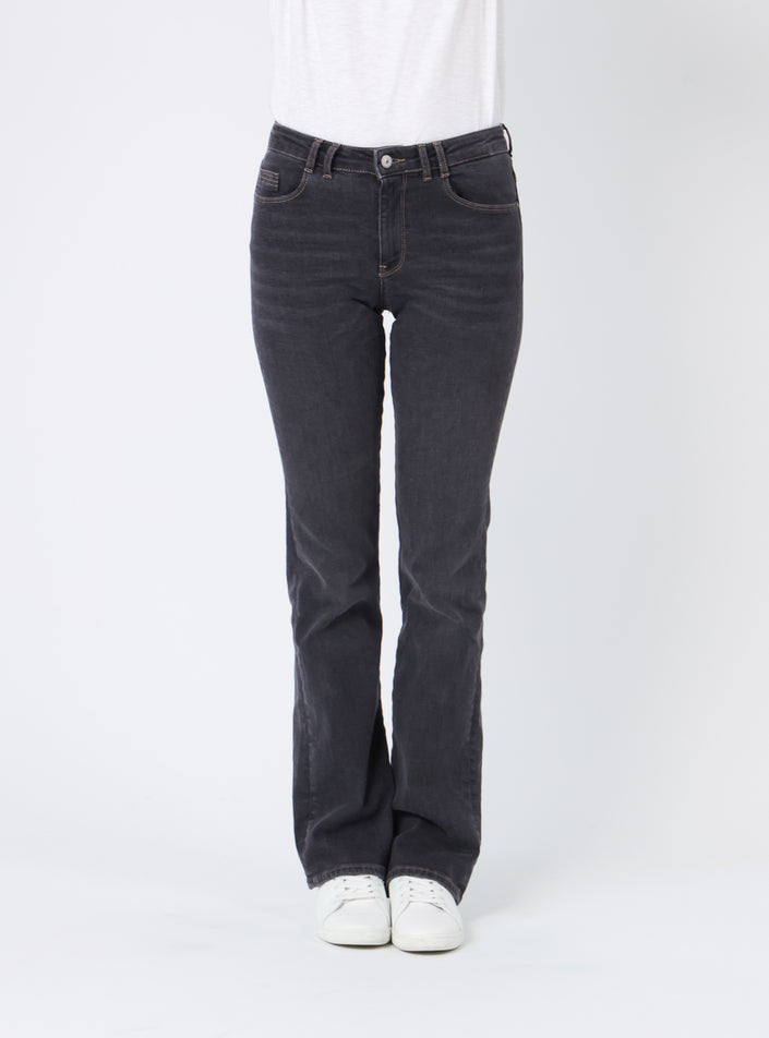 Élégant et polyvalent, ce pantalon bootcut femme en gris foncé affine la silhouette grâce à sa coupe ajustée et légèrement évasée en bas de jambe. ...