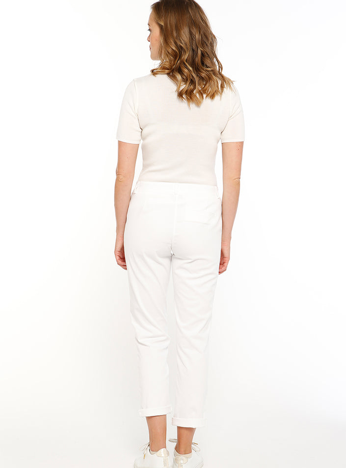 Ce pantalon chino femme en coton blanc est la pièce incontournable pour une allure à la fois élégante et décontractée. Sa coupe droite et sa matièr...