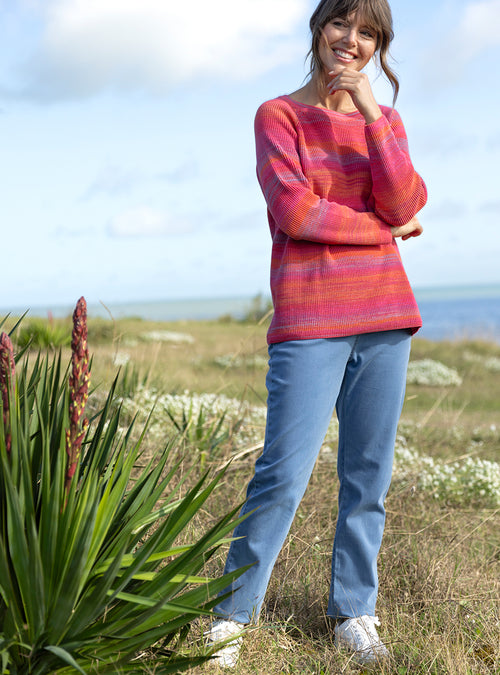 Pull femme en laine mérinos col rond Rose Léger