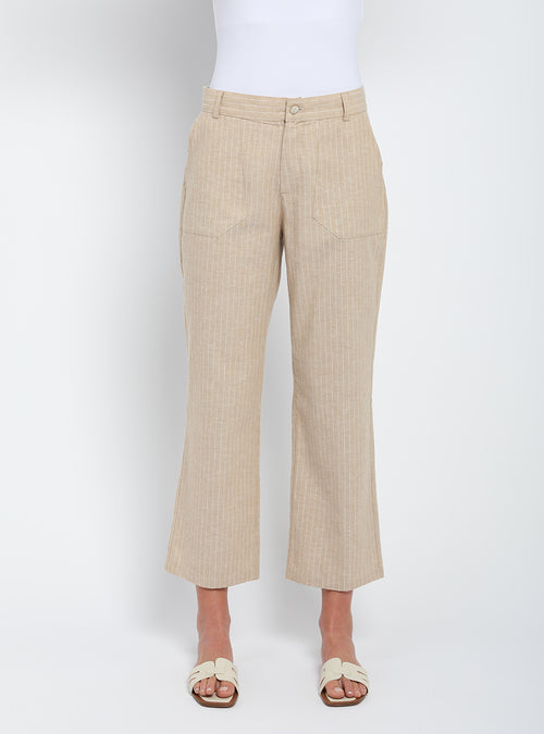 Pantalon rayé beige 7/8ème femme