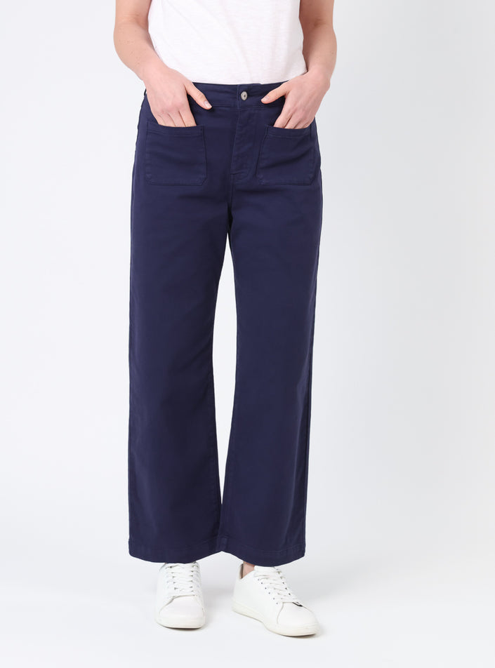 Dans son coloris bleu marine intemporel, ce pantalon s’accorde aussi bien avec une chemise blanche pour un style chic qu’avec un t-shirt coloré et des baskets pour un look décontracté.