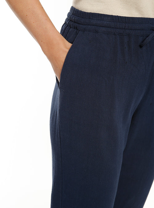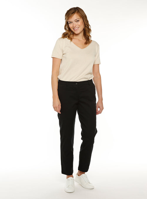 Ce pantalon femme en tissu chevrons est l’alliance parfaite entre élégance et confort. Sa coupe droite et sa taille élastiquée à lien offrent une g...