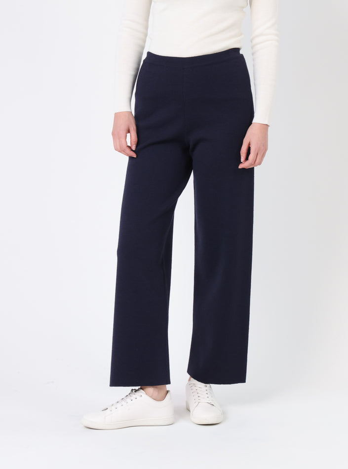 Ce pantalon femme en laine mérinos bleu marine est conçu pour offrir un style moderne et confortable. Sa coupe droite légèrement évasée permet une ...