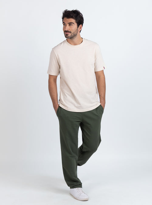 Réalisé en 70 % coton et 30 % polyester, ce pantalon associe la douceur naturelle du coton à la résistance du polyester. Le molleton gratté à l’intérieur offre une chaleur agréable et une texture ultra-douce sur la peau. La taille élastiquée s’ajuste parfaitement sans comprimer, et les poches latérales pratiques ajoutent une touche fonctionnelle pour un usage quotidien.