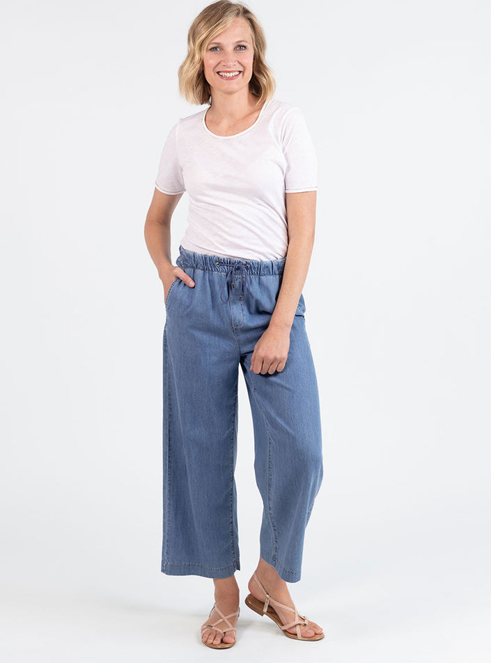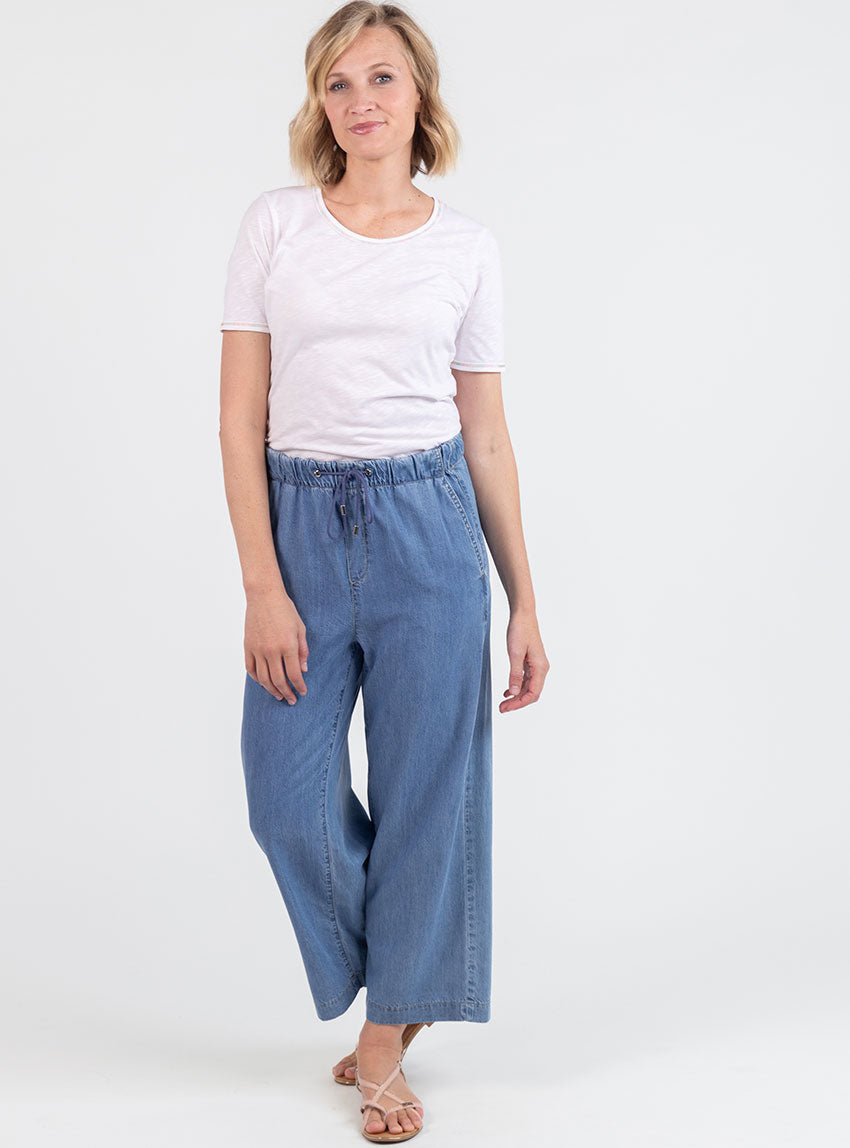 PANTALON FEMME FLUIDE COTON BLEU CLAIR
