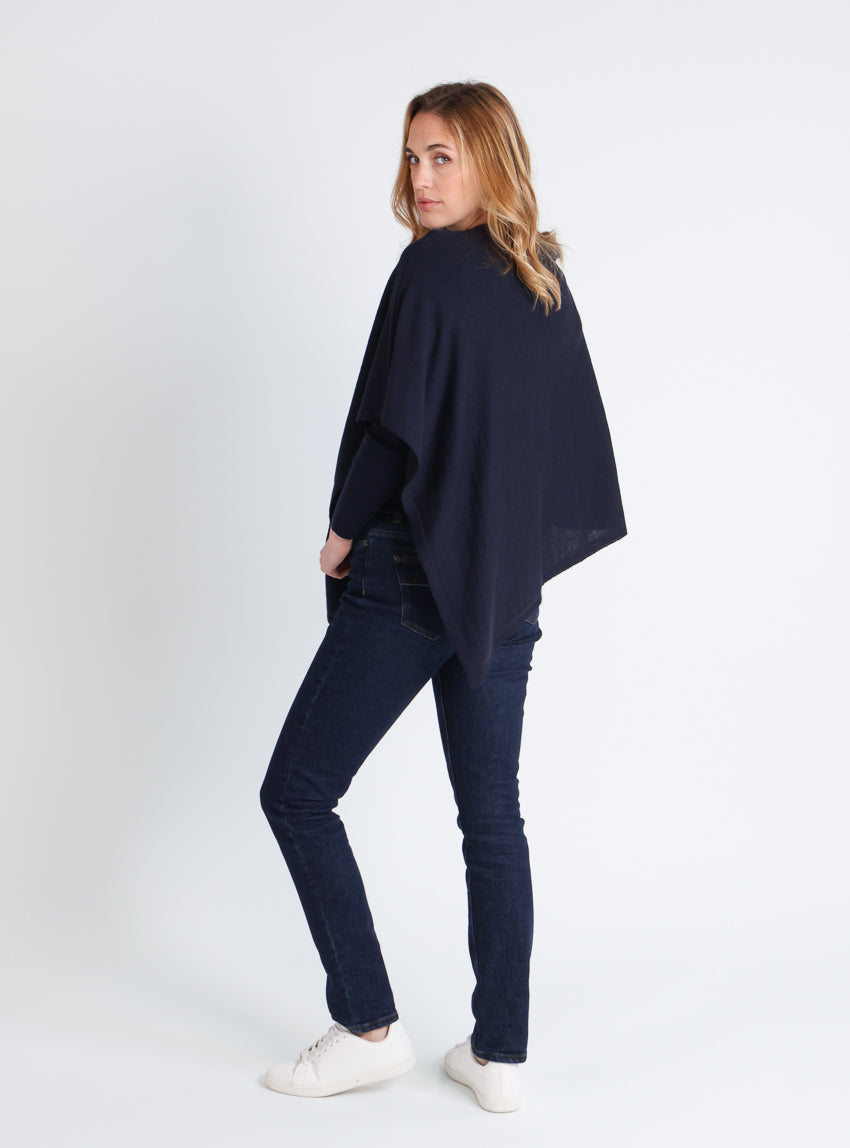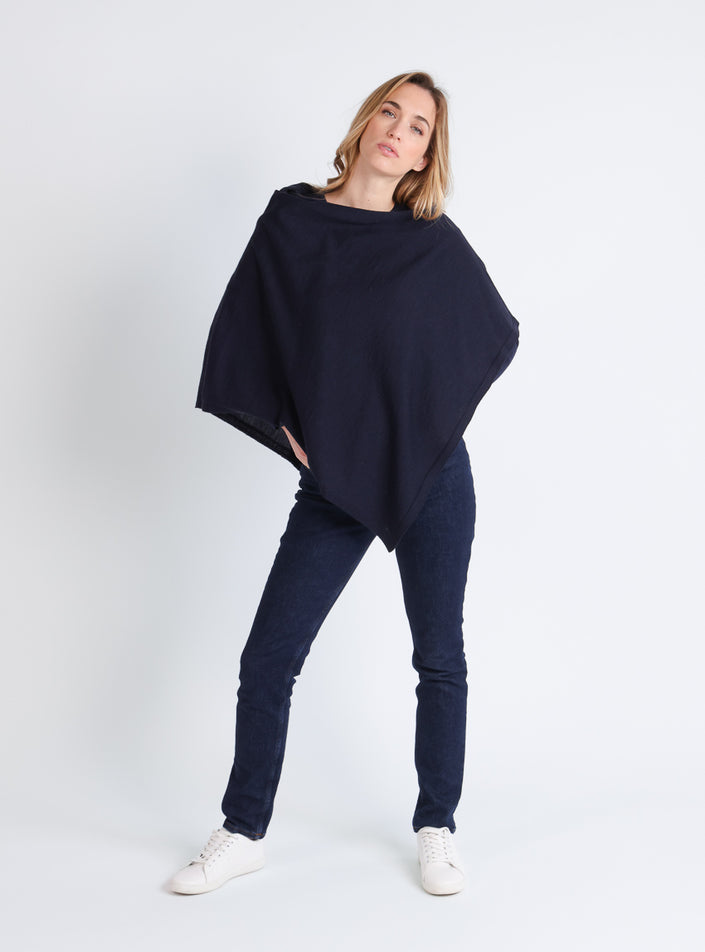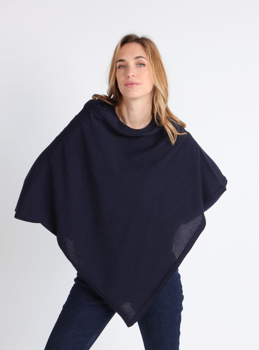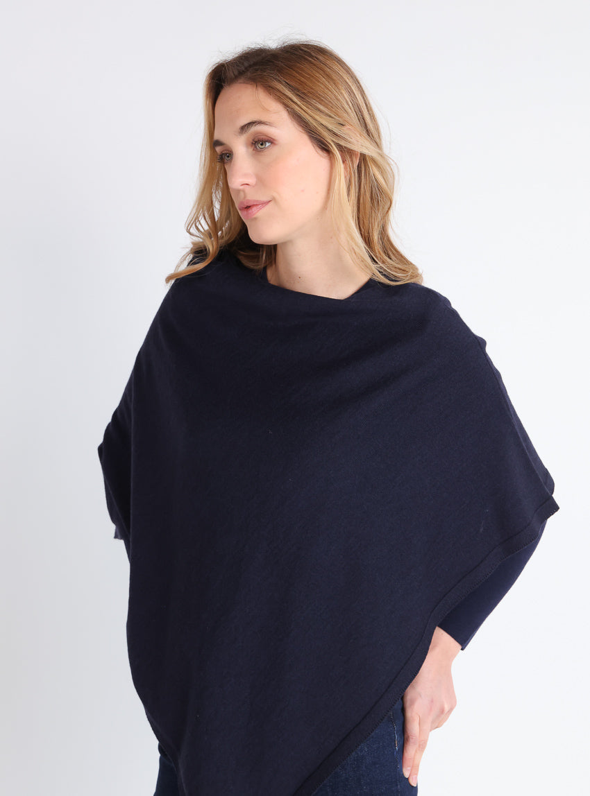 PONCHO FEMME EN LAINE MÉRINOS BLEU MARINE