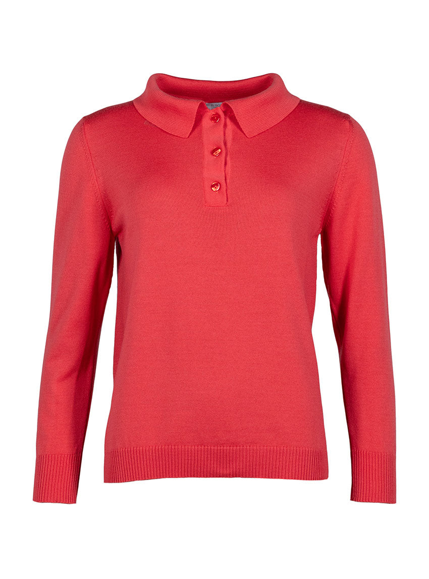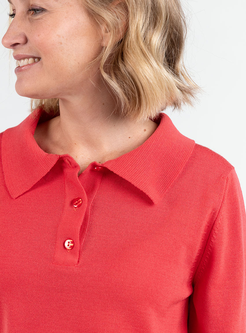 PULL FEMME COL POLO EN LAINE ROUGE LUMINEUX