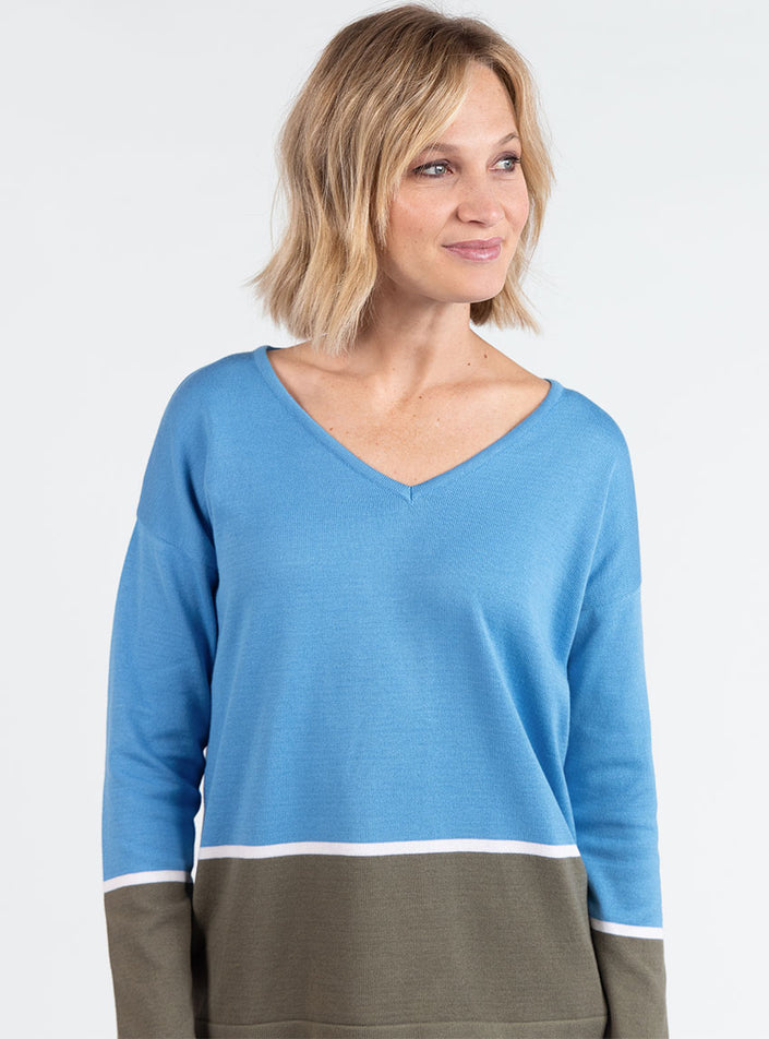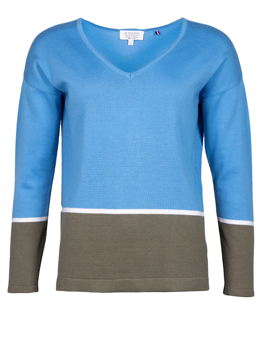 PULL FEMME COL V COTON BLEU PACIFIQUE