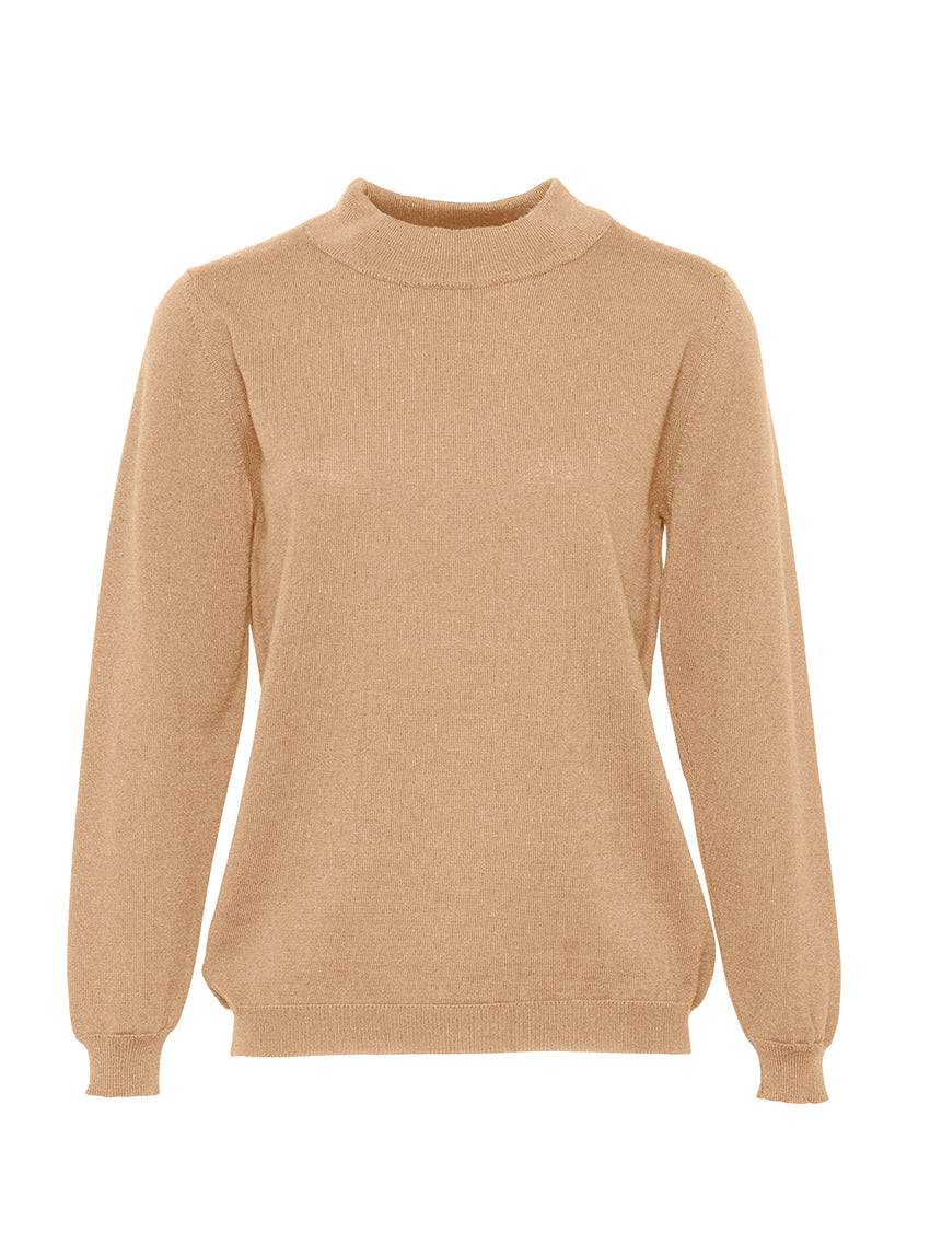 Pull femme col cheminée en laine mérinos Beige Chaud