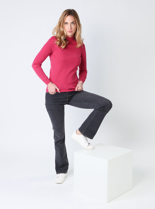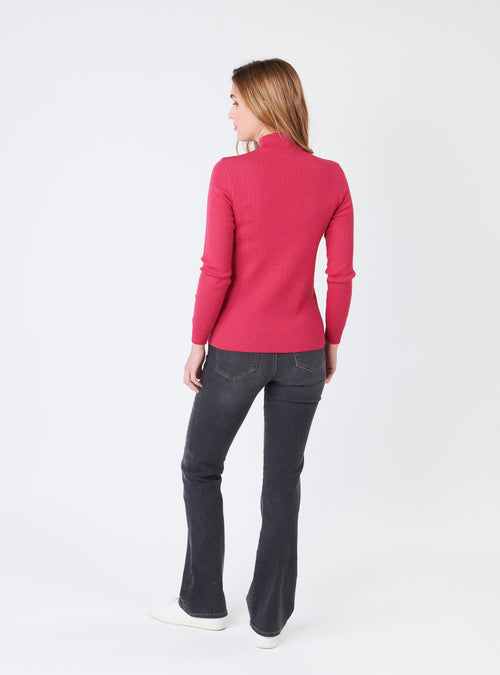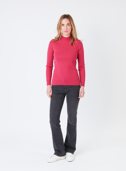 Pull femme col cheminée en laine mérinos Rose Géranium