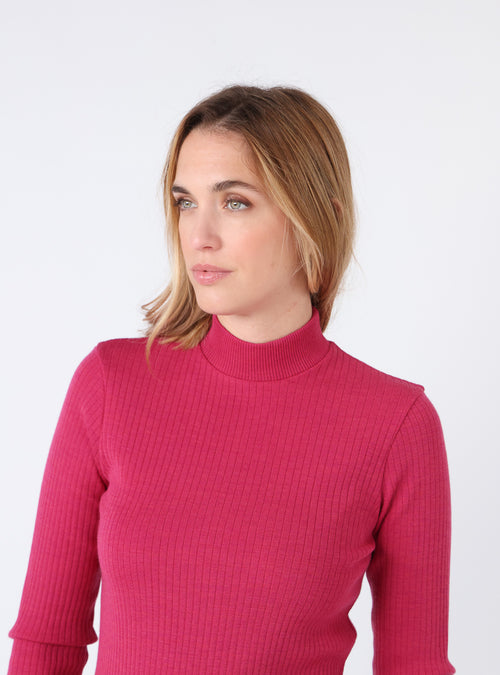 Pull chaussette femme col cheminee laine mérinos Rose géranium