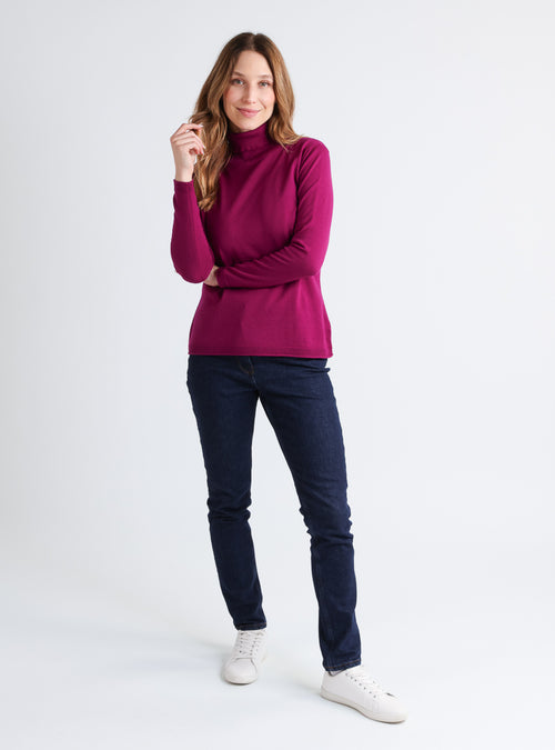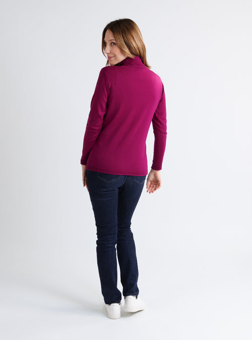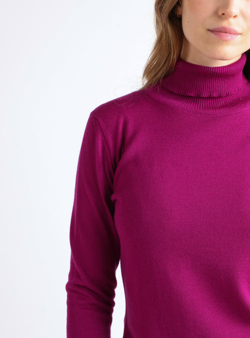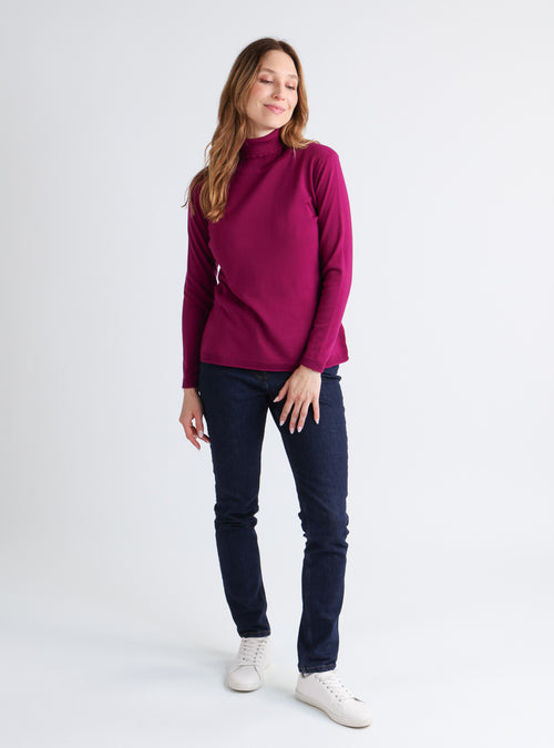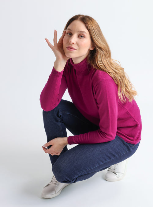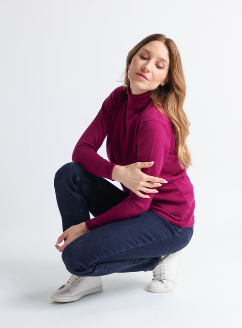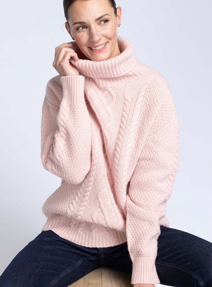 Adoptez une élégance douce et responsable avec ce pull col roulé rose poudré en laine fine recyclée, tricoté en Vendée. Conçu à partir de laine 100...