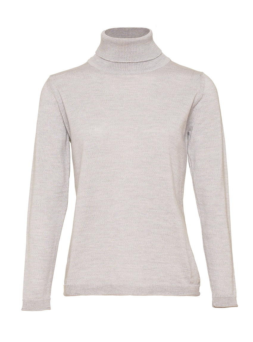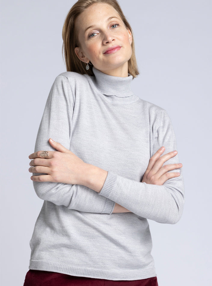 PULL FEMME COL ROULÉ EN LAINE MÉRINOS GRIS GIVRÉ