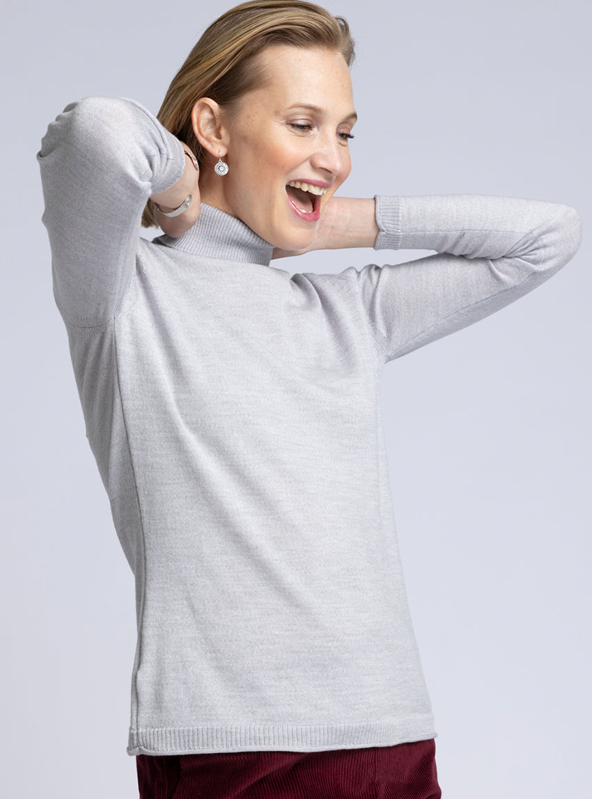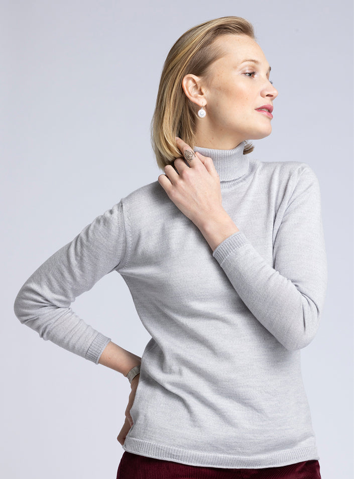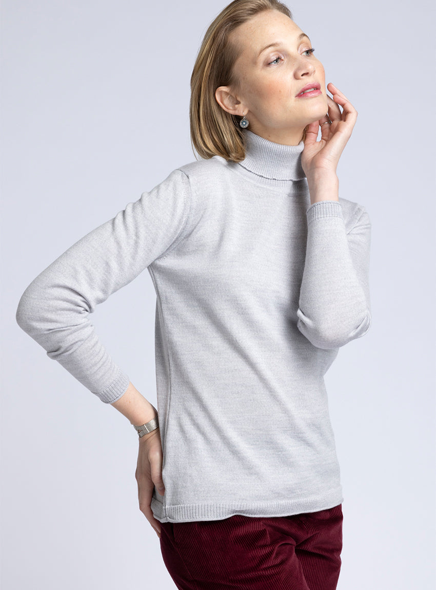 Pull chaussette femme col roule en laine mérinos Gris Léger