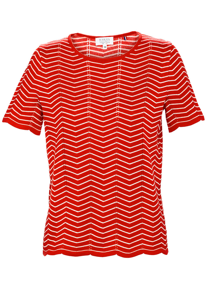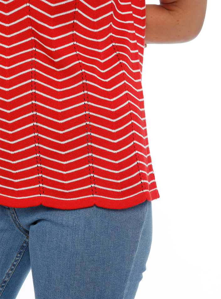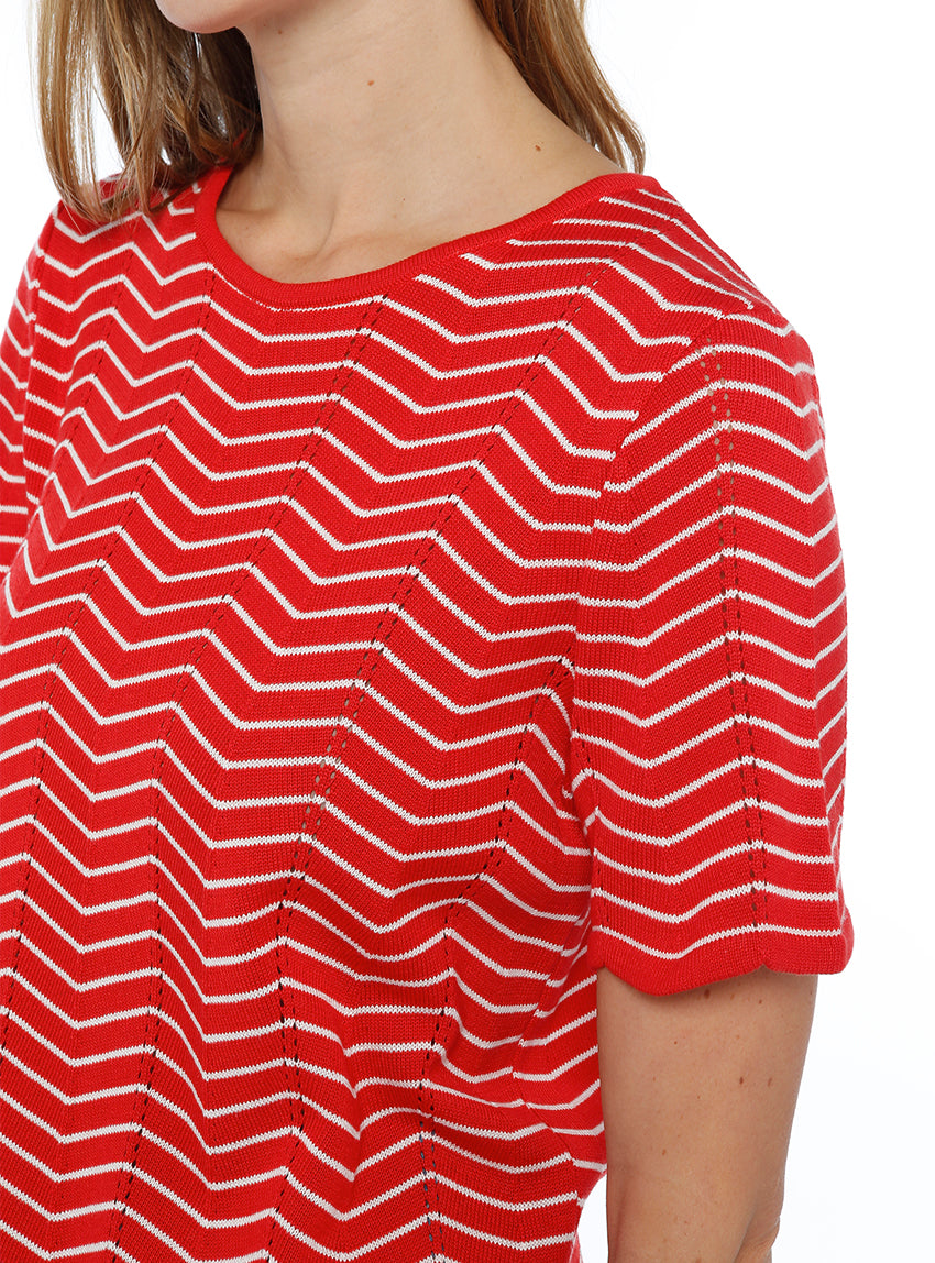 PULL FEMME COTON MANCHES COURTES ROUGE/CRÈME