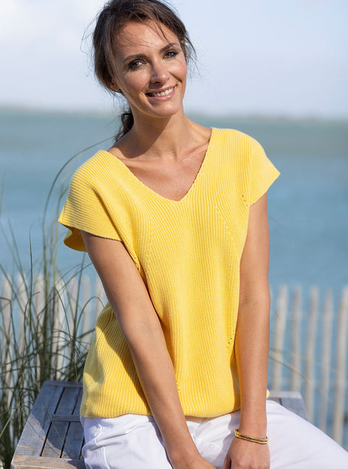 Ce pull est fabriqué en France, gage de finitions soignées et d’un savoir-faire textile reconnu. Son tricot fin et sa maille ajourée offrent un tombé souple et confortable, idéal pour la mi-saison ou les soirées d’été.