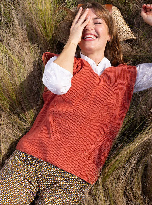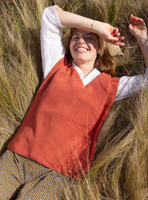 Adoptez le charme intemporel du pull femme esprit marin avec ce modèle rouge et crème au design élégant et lumineux. Confectionné en France dans une maille douce et respirante, ce pull associe 50% coton pour le confort naturel et 50% acrylique pour la tenue. Sa maille jersey à chevrons ajourés et son effet cranté en bas de corps lui apportent un look à la fois classique et moderne, parfait pour les journées ensoleillées.