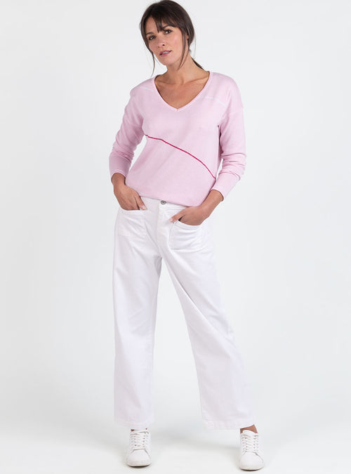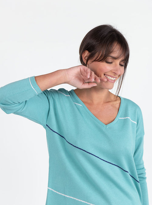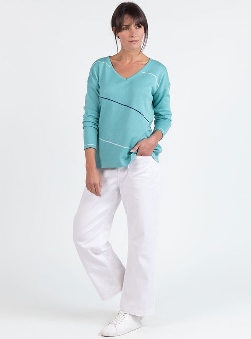 Laissez-vous séduire par ce pull femme en coton et lin, une pièce à la fois chaleureuse, raffinée et respirante, confectionnée en France. Sa compos...