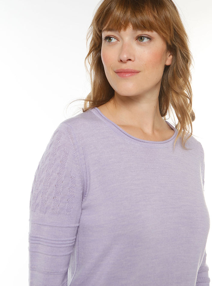 Le pull femme en 100% laine mérinos fine violet clair est une pièce légère et sophistiquée, parfaite pour illuminer votre vestiaire. Sa coupe droit...