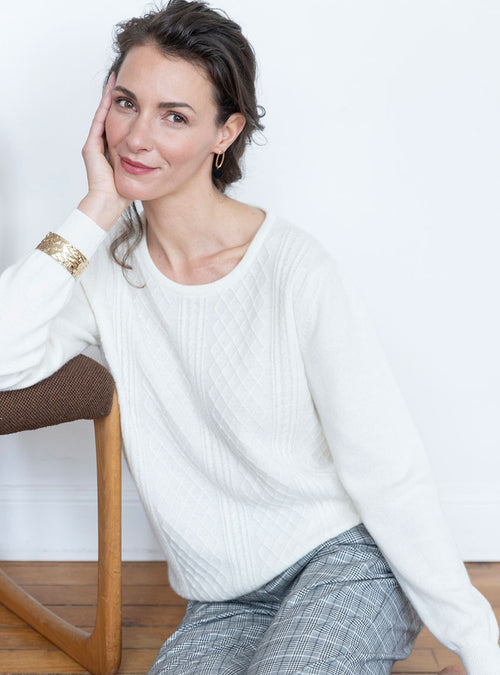 Ce pull femme allie élégance et confort grâce à son mélange raffiné de 90% laine mérinos ultrafine et 10% cachemire. Léger et chaud à la fois, il o...