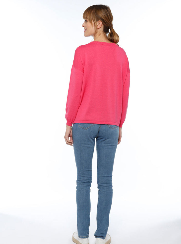 PULL FEMME EN LAINE MÉRINOS ROSE